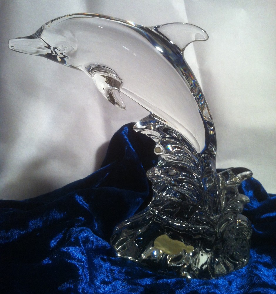 This Wonders of the Wild dolphin # 880 has on it the “PH” trademark. If you love Dolphins or The Dolphins, this 24% lead crystal Bottle-nosed Dolphin jumping out of the water will add a touch of class to any room in your home. It is perfect for the dolphin enthusiast or connoisseur. Any man, woman or child will admire the beauty and grace of this 5 ½ inch creation. Add it to your Princess House collection. New in Factory Box.