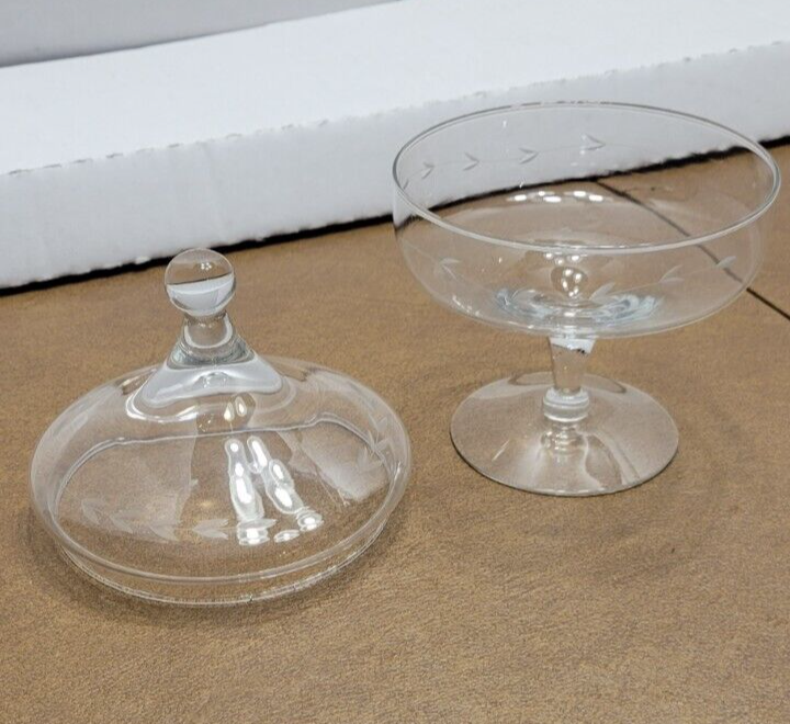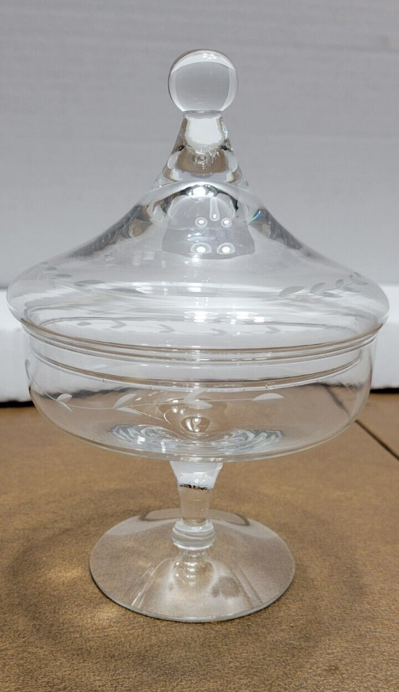 Princess House Heritage Etched Crystal Pedestal Candy Dish with Lid