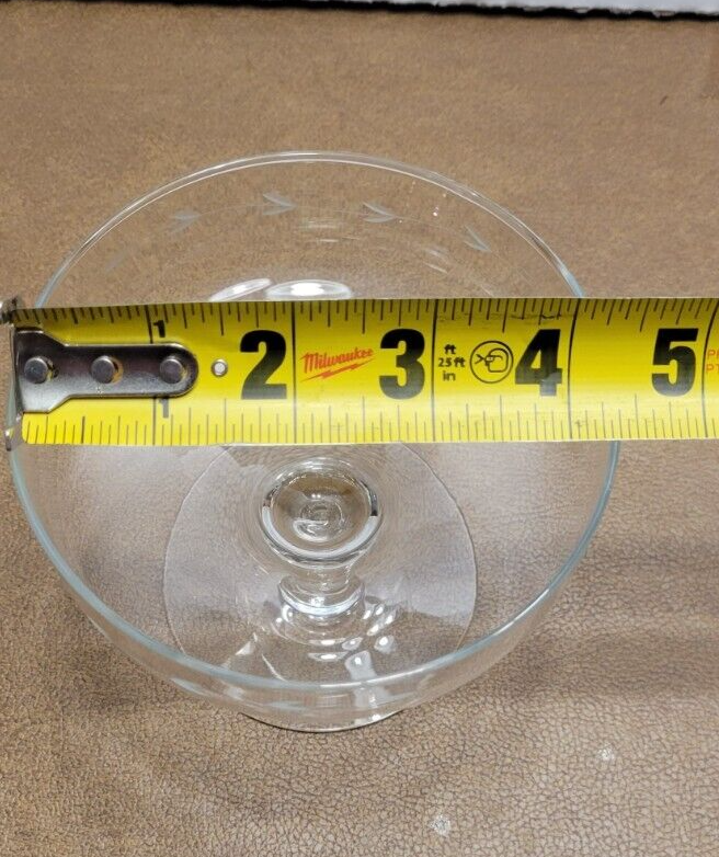 The Princess House Heritage Etched Crystal Pedestal Candy Dish with Lid is a stunning collectible piece made of clear crystal with Americana style etching. This original Princess House item features a pedestal design and comes with a lid, making it perfect for storing and displaying candies or other small items. The intricate etching adds a touch of elegance to this piece, making it a beautiful addition to any decorative collection. See photos for condition as they are part of the description.