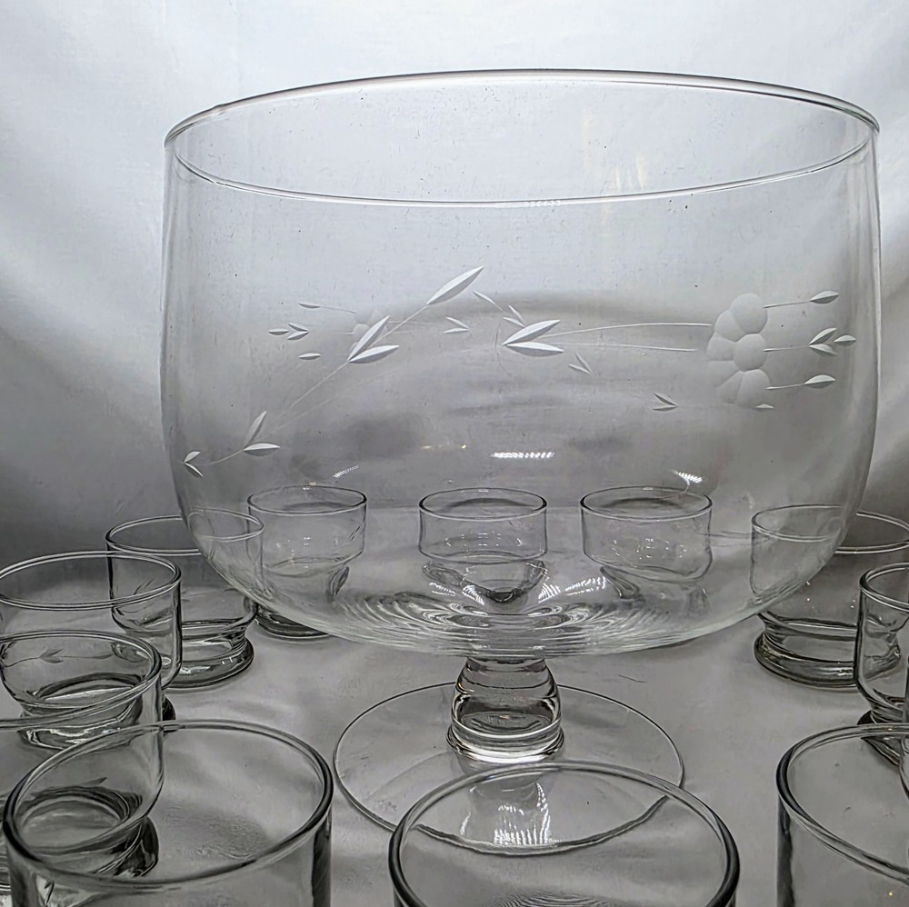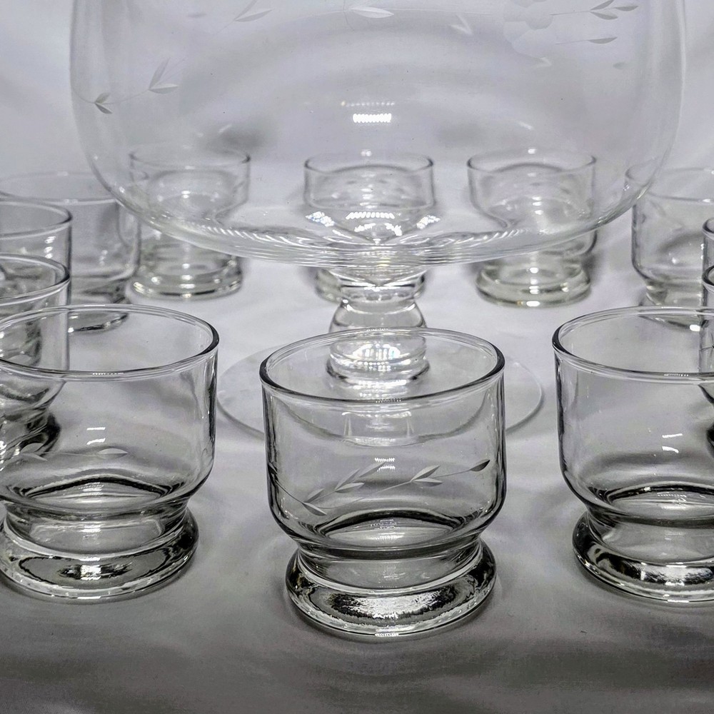 The Princess House Heritage Hostess Punch Bowl 13-PC Serving Set 069 is a luxurious and elegant glassware set perfect for serving punch and drinks during special occasions or everyday gatherings. Made of clear crystal, this set features a beautiful Heritage pattern that adds a touch of sophistication to any dining table or bar area. The set includes a punch bowl and matching cups, making it a versatile and practical addition to your glassware collection. Ideal for hosting guests or simply adding a touch of glamour to your home, this Princess House set is sure to make a statement.