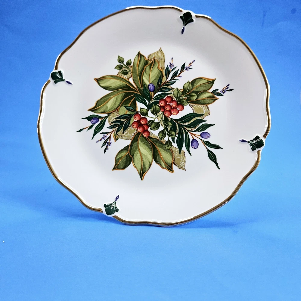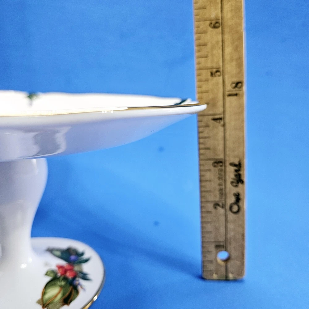 HomePrincess House Winter Garden Footed Cake Stand Holiday Christmas Holly Plate