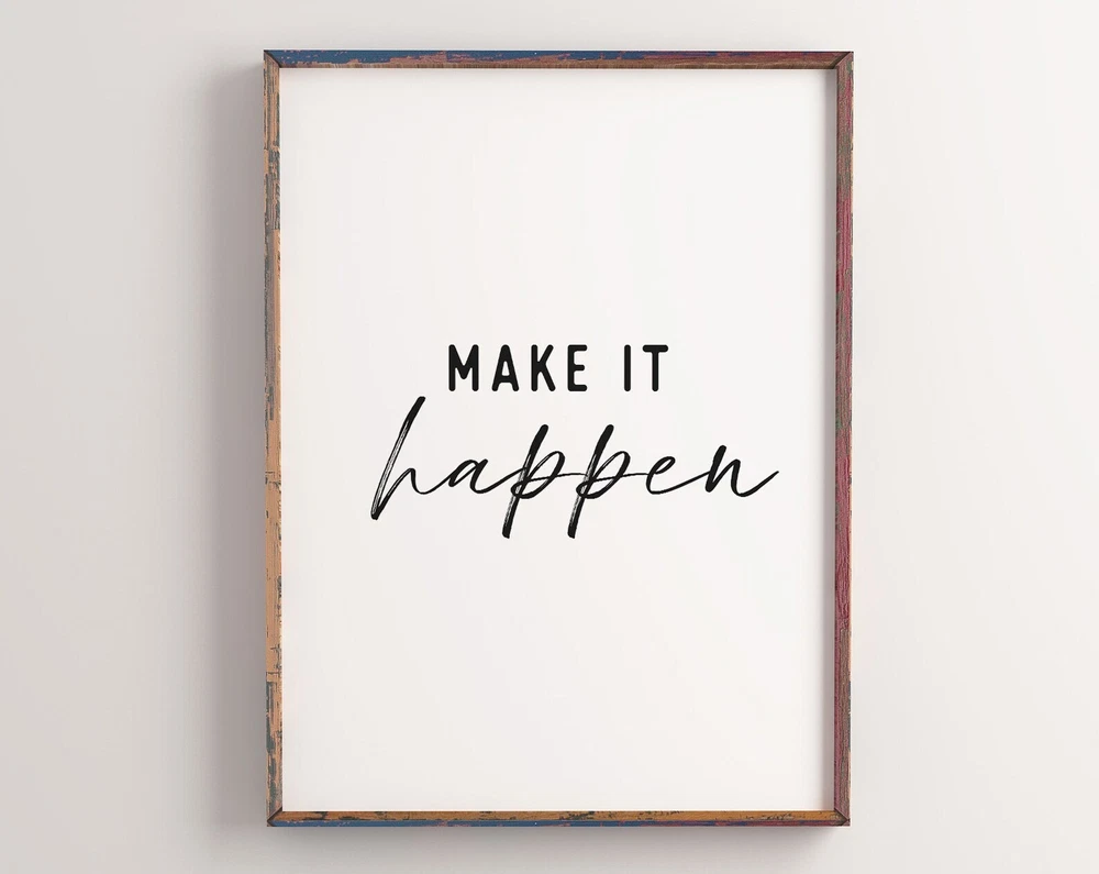 Printable Office Decor Make It Happen Wall Art Motivational Office Art Positive Sayings Print Material: Premium luster photo paper Print type: Inkjet printing One side printed + The finish provides the highest possible resolution and color saturation + Lasts up to 200 years in color and 400 years in black-and-white + Printed on high-quality resin-coated photo base paper medium + Posters can be hung with double-sided tape, tacks, or framed + Hand washing with a gentle cry cloth is recommended for extended durability I will hand select the best choice of paper for your chosen design to ensure top quality results for a beautiful, bright and luxurious print. All prints are sealed in cellophane slips for protection during transportation, and are shipped in a protective cardboard envelope.
