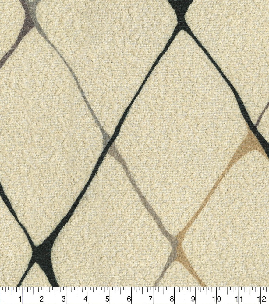 This eye-catching home decor fabric is heavyweight and features a gorgeous visual interest. Use for window treatments, toss pillows, and even upholstery fabrics that won't see a lot of wear. FEATURES: This eye-catching, heavyweight home decor fabric features a beautiful visual interest. Perfect use for heavier window treatments (draperies, valances, swags), toss pillows, and upholstery projects. SIZING: This fabric is 54'' wide and sold by the yard and cut to order. For example, order of 1 yard (Qty=1) is 54" x 36''. Order of 3 yards (Qty=3) is 54'' x 108''. MATERIAL: Base- 100% polyester; Back- 100% recycled polyester woven bonded back CARE: Dry clean only DETAILS: Straight match; vertical repeat: 22"; horizontal repeat: 13.5"; Wyzenbeek abrasion results: 51,000