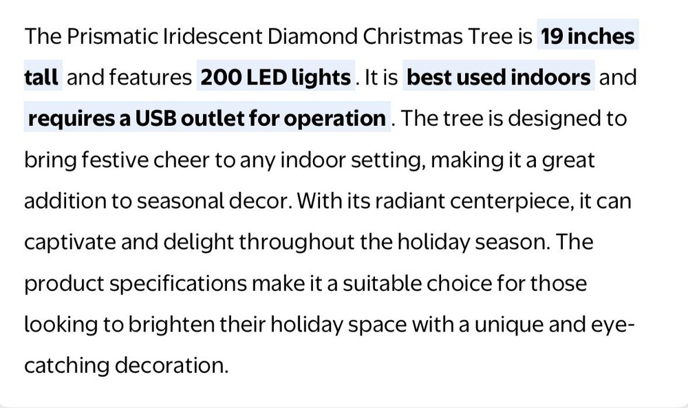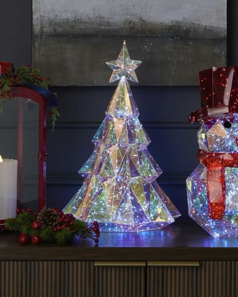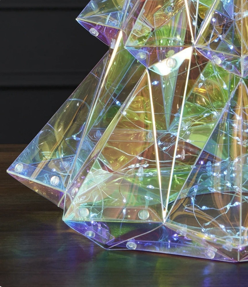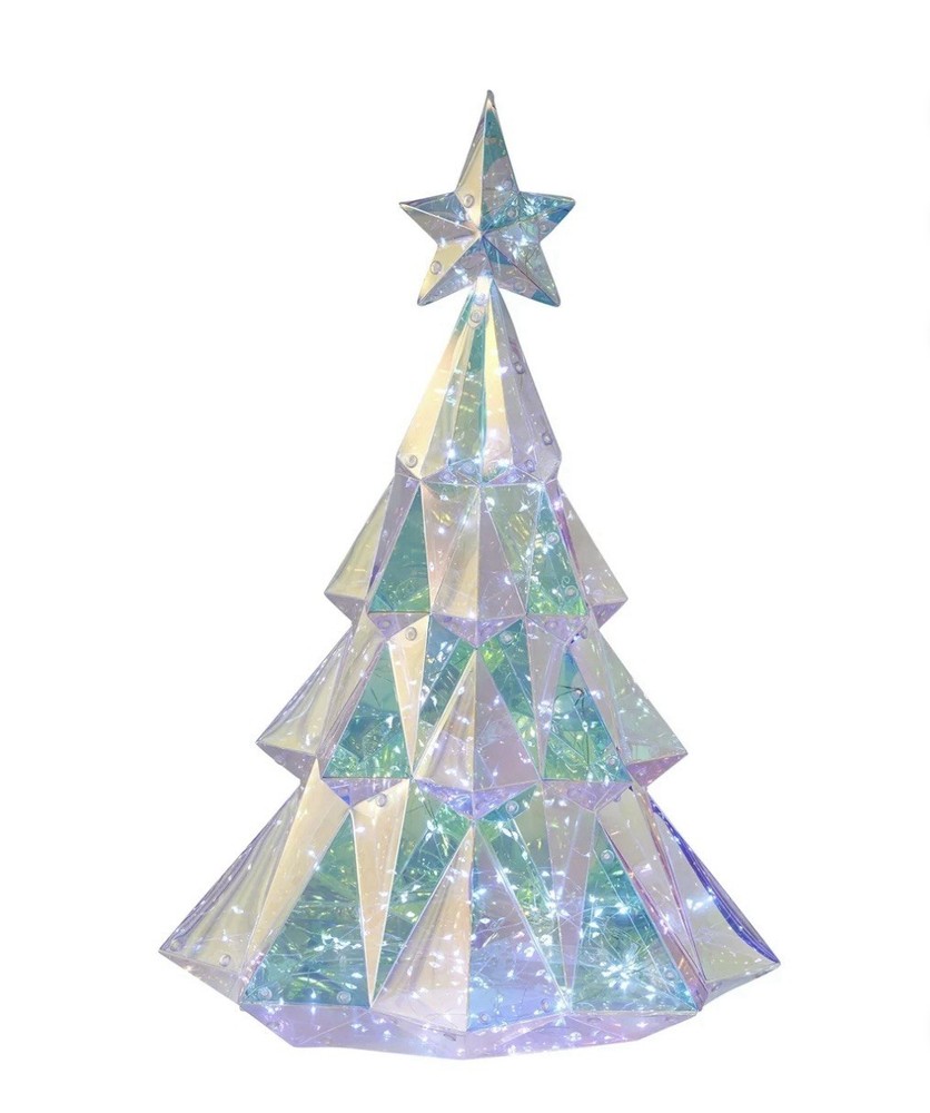 Bring sparkle and modern holiday magic to your décor with this stunning 19” Prismatic Iridescent Diamond Christmas Tree from Seasonal LLC. Featuring LED lights that shine through a shimmering iridescent finish, this statement piece adds a touch of elegance to any festive setting. Perfect for mantels, tabletops, or entryway displays! Details: • Brand: Seasonal LLC • Product: LED Prismatic Iridescent Diamond Christmas Tree • Height: 19 inches • Color: Iridescent with prismatic finish • Lighting: Built-in LED lights (battery-operated – batteries not included) • Material: Durable plastic/resin • Condition: New in box (NIB) • Use: Indoor holiday decoration Features: • Stunning reflective finish that changes with the light • Long-lasting LED illumination • Lightweight yet sturdy • Elegant design perfect for modern holiday themes 🎄 Great addition to your seasonal décor or a thoughtful gift for holiday lovers!