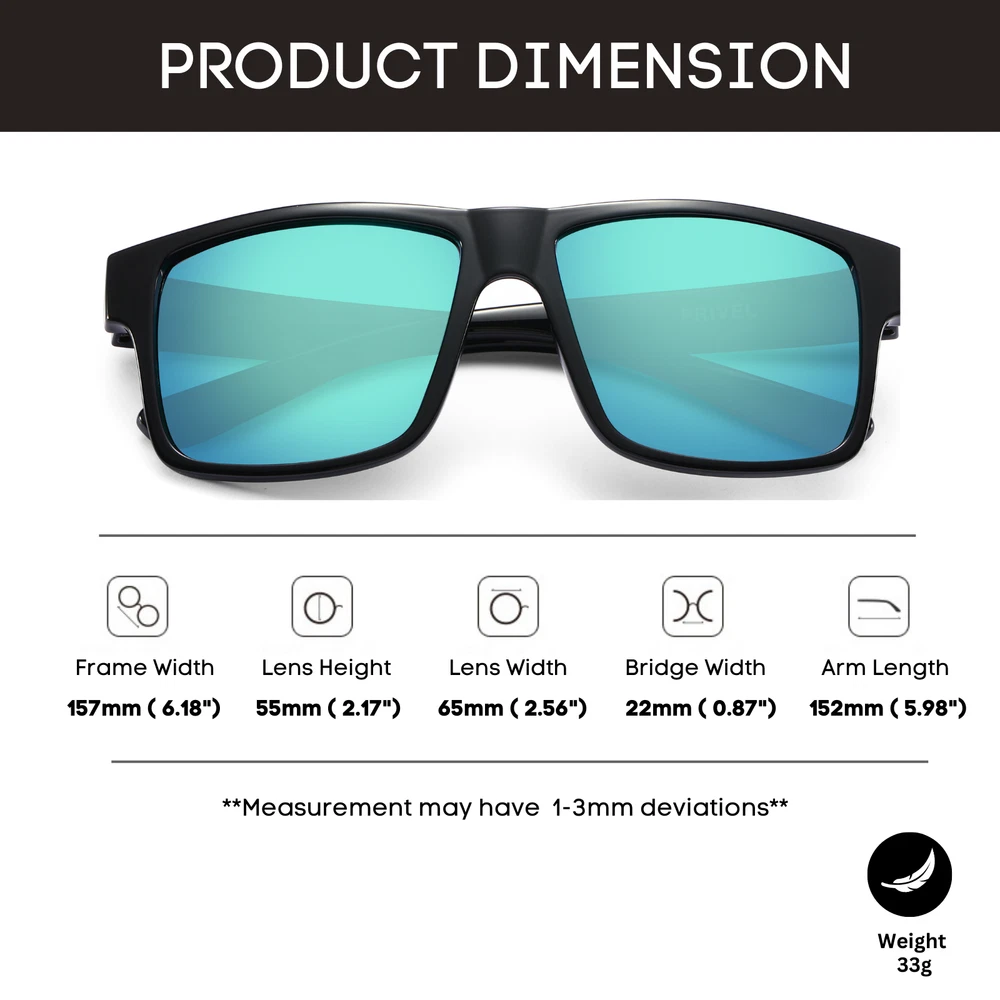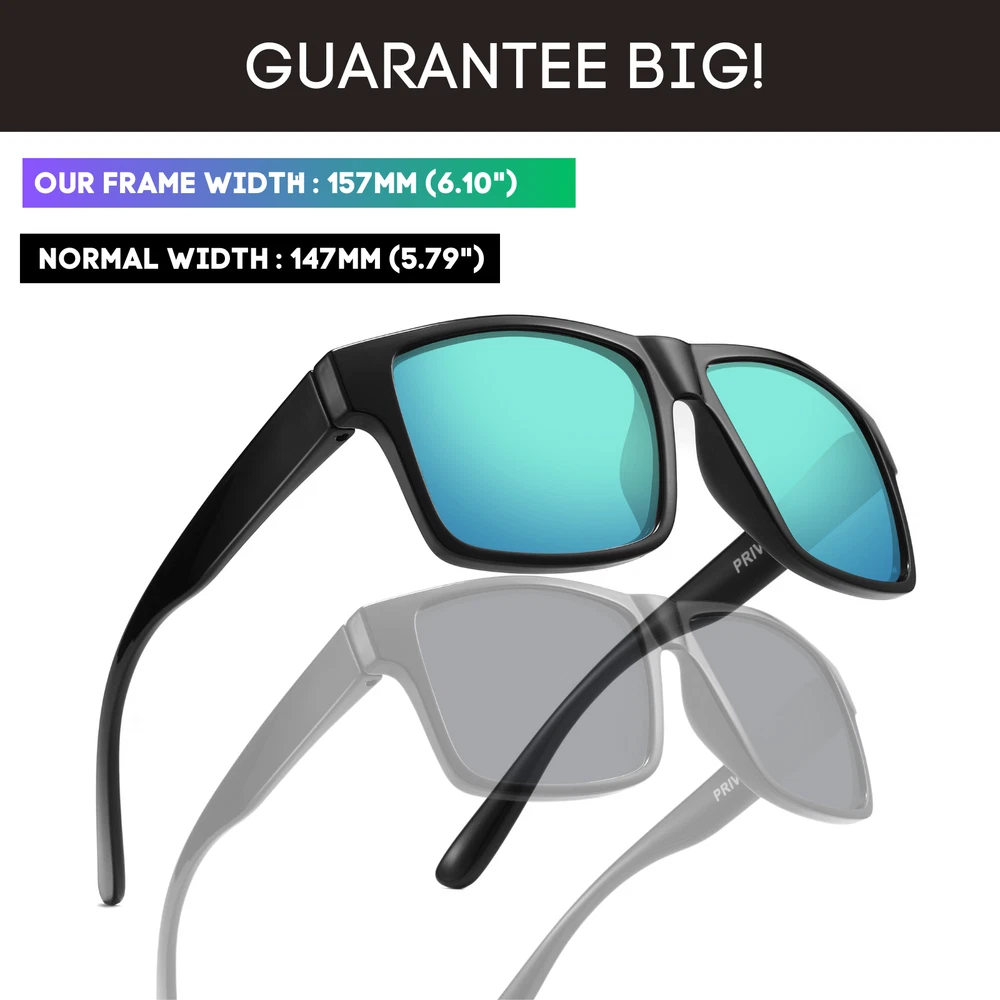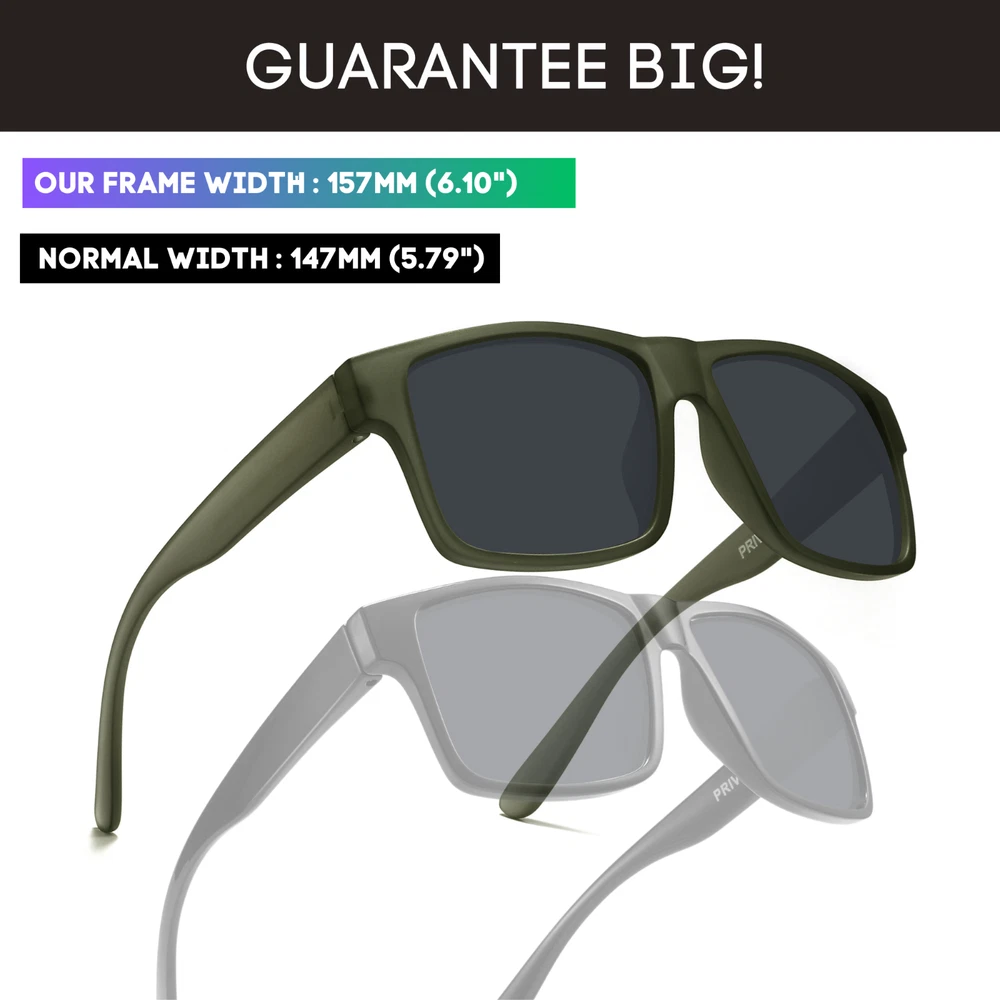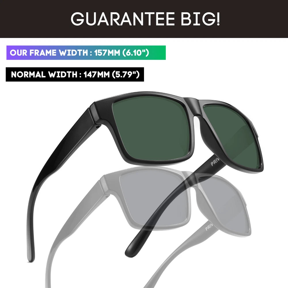Privel XXL Size Extra Large Square Polarized Sunglasses for Big Wide Heads 157MM