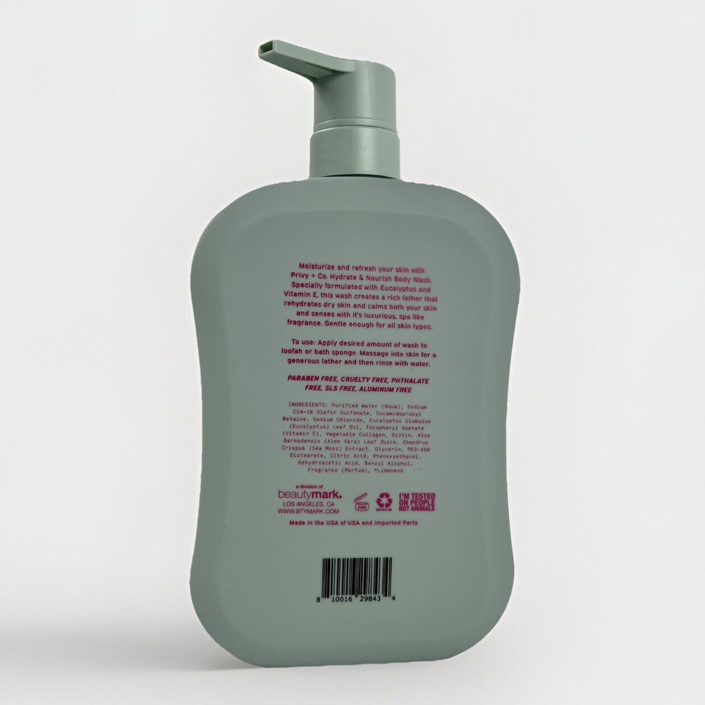 Privy+ Co. ~ Eucalyptus & vitamin E Moisturizing Body Wash with Vitamin E 33.8 fl oz. Shipping is calculated by eBay based on weight and size of package, which sometimes seems high, even to the seller. Therefore, sellers shipping discount is shared with the buyer making it as low as possible. We use recycled shipping supplies, when possible. Due to new USPS policies, your item may take longer than USPS/eBay promises. Orders will be processed within stated time by seller. Security measures are taken to protect seller from fraudulent activity.