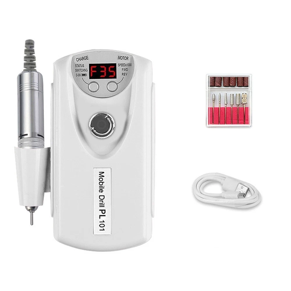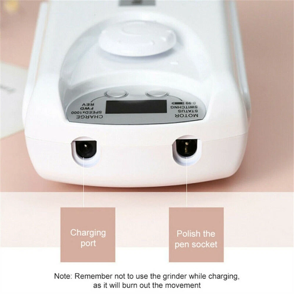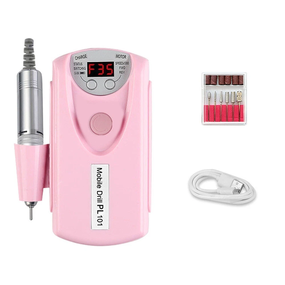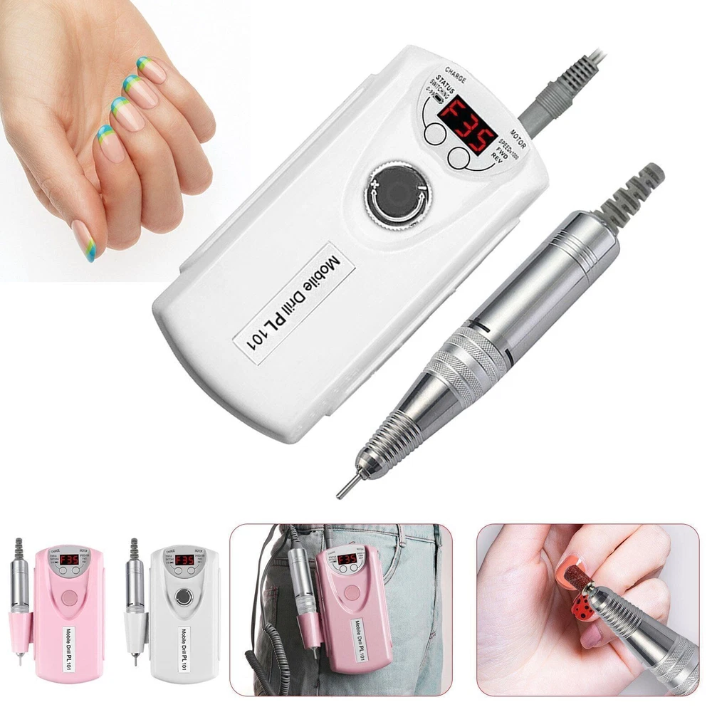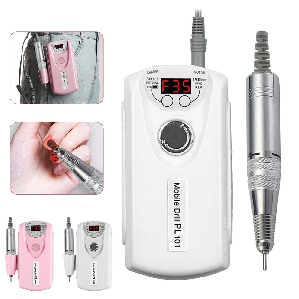 Specification: 100% Brand new and high quality Material: ABS body, aluminum barrel Color: White,Pink Rotating Speed: 0~35000RPM Product Size: 70*150*40mm Pen Length: 130*20mm Power Supply: 2200mAh Power: 60W Package included: 1x Nail Drill Machine 1x Grinder Pen 1x USB Charging Cable 1x Stand 6x Metal Grinding Head (1 set) 1x English Manual About this item 【Multi-functional Nail Drill】Variable speed up to 35,000RPM, this powerful efile nail drill can not only deal with shaping or grinding natural nails, but also ideal for more difficult work such as handling with thick nails, dipping powder and acrylic nails. 【Advanced and secure nail efile】 Equipped with upgraded motor and chip, this nail drill is consistently steady and anti-vibration. Also it makes lower noise, which is around 60dB even at the maximum speed. With the special design of twisting locking nail drill bits system, it provides higher security. Made with aluminum alloy and designed with ventilation holes, this electric nail drill has better dissipation performance avoiding overheating. 【Cordless and LED screen】 Rechargeable nail drill equipped with battery of 2,000mA, is able to work up to 10h after 2h's charged. If the manicure is not done before the battery runs out, it will work even while charging. With forward/reverse options, this electric nail file is suitable for both left and right handed people. With the LED smart screen embedded, you can easily know the information such as rpm, direction and battery, which makes it easier to use. 【Portable and versatile】 Electric efile with compact and lightweight design, wireless, effortless to bring it everywhere. Complete nail drill set with nail drill bit set of 3/32” and sanding bands, it's ideal for grinding, sharpening, carving, engraving, routing, sanding, cutting, polishing and drilling. This portable nail drill is suitable for natural nails, gel nail polish, acrylic gel, dipping powder, thick nails, cuticle, dead skin and also nails for dogs and pets.