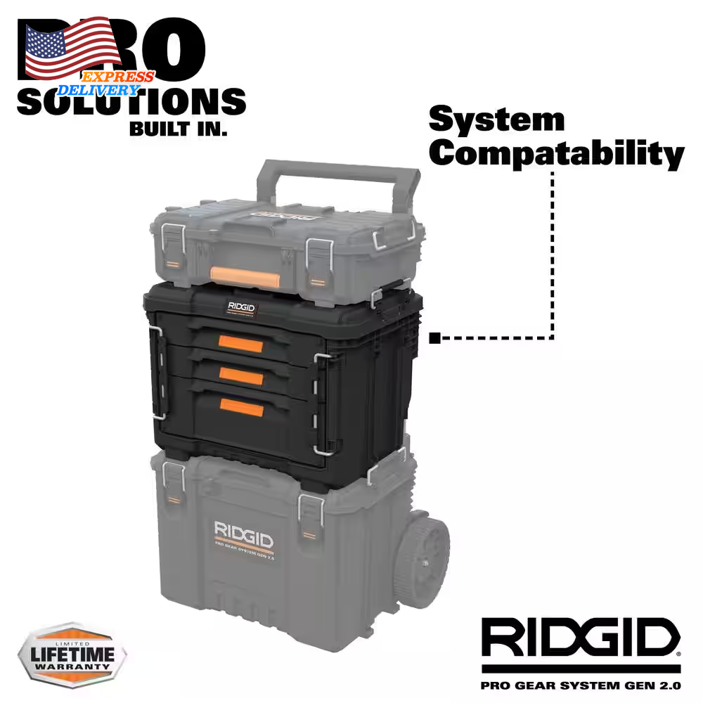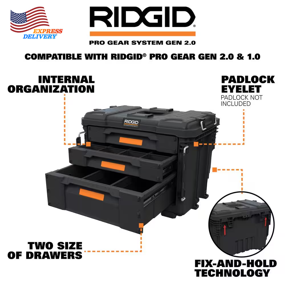 Store New Arrivals Add to Favorite View Feedback Contact Pro Gear System Gen 2.0 14.6 In. W Black Resin XL 3 Drawer Durable Hand Tool Box with Dividers for Internal Organization Description Color Family Black Color/Finish Black Features Lockable,Stackable,Wall Mountable,Weatherproof Holding Capacity (cu in) 5000 cu in Included Accessories Drawer Dividers,Latches,Lid Material Resin Number of Drawers 3 Drawer Product Weight (lb) 23.8 lb Returnable 90-Day Tool Box Type Hand Tool Box Tool Storage Product Type Tool Box Tools Product Type Tool Storage Weight Capacity (lb) 55 lb Maximum Handle Length (in) 3 in Product Depth (in) 22.3 in Product Height (in) 16.2 in Product Width (in) 14.6 in Water resistant 3-drawer tool box for big and small tool storage high-impact resin construction for long-lasting performance Compatible with all RIDGID Pro Gear Tool Storage Systems The RIDGID 22 in. Pro Gear 2.0 XL 3 Drawer is made with high-impact resin for long-lasting performance. This Tool organizer is the most versatile and durable toolbox for any job site or worksites. This unique Drawer 2 plus 1 design offers 2 shallow drawers and 1 deep drawer to store large and small-sized tools with maximum ease and convenience. This RIDGID's Pro Gear 2.0 Tool box is a half footprint connectivity with metal ball bearing drawer slides and padlock eyelet for security. Each drawer is front-lockable for easy access and safe transport. Dividers are included (1 set for shallow drawer and 1 set for deep drawer) allows internal organization and storage of small parts and clear division in the deep drawer, for fast search and organization. The XL drawer toolbox is also compatible with the 2.0 cart for a quick Attach-and-Detach from the 9 in. wheels. You can be mobile and also have the convenience of taking the drawer you need without unmounting the unit. This toolbox allows you to create an organized and functional workspace with its hanging the drawers - Fix- and- Go mechanism The XL drawer can be base unit in the Pro Gear modular mobile system or create a full stack of drawer - top to bottom with unlimited access. The Pro Gear XL Drawer 2 plus 1 is fully compatible with RIDGID's Pro Gear System 2.0 and 1.0 products, customized your storage solutions for easy transportation, organization and more accessibility with XL Drawer 2 plus 1. You have the capability to fully access drawers while mounted, Divider included for optimal tool and parts organization Equipped with durable, hybrid pro-grade latches and improved metal hinged lid Label your storage contents with convenient label nameplate (label not included) Padded handle for comfortable carrying High-impact resin construction for lasting durability Maximum Loading Capacity: 11 lbs Shallow Drawer / 22 lbs Deep Drawer Integrated padlock eyelet to allow for locking (padlock not included) Compatible with RIDGIDTM Pro Gear tool storage systems 2.0 and 1.0 ABOUT US We offer the best prices around on high quality products. Our E-store includes media such as books, movies, music and games while offering electronics, toys, sporting apparel, clothing, tools, general home, garden items and more. SHIPPING We are always working hard to ensure your package arrives as soon as possible. Please understand that some factors like weather, high postal traffic, and the performance of shipping companies are outside of our control. We offer free shipping to the lower 48 states and ship within 2 business days of payment, usually sooner. We do not accept P.O. Boxes. Please provide a physical address. For shipping outside of the continental USA, we only use eBay's Global Shipping Program.The item is shipped to KY and then sent to the rest of the world. International customers are responsible for all duties and taxes. Continue to check out in order to calculate costs for shipping the item to your country. Messages regarding eBay's Global Shipping Program MUST be directed at eBay EXCLUSIVELY. RETURNS We offer a 30-Day Return Policy on items which you are not completely satisfied with. You have the option for a full-refund or an exchange of the item. No returns are available on items shipped outside of the USA. PAYMENT We accept PayPal. CONTACT US This page content is yet to come Please ad us to your favorite seller and visit again later Thank You CUSTOMER SATISFACTION We try our very best to make sure every customer is completely satisfied. If there's a problem, message us! We're happy to help. WE ACCEPT Copyright © 2021 AutoDS. | All Rights Reserved