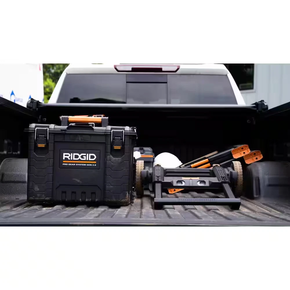 Fast Shipping On All Items 30 Days Money Guarantee Customer Support Excellent Service 100% Satisfaction Satisfaction Guaranteed Pro Gear System Gen 2.0 Stackable 25 in All Terrain Rolling Tool Box with 9 In. Wheels Specification Color Family Black Color/Finish Black Features Handles,Lockable,Rolling,Stackable,Weatherproof Holding Capacity (cu in) 5000 cu in Included Accessories Latches,Wheels Material Resin Modular Storage Type Rolling Tool Box Modular System Type Pro Gear Product Weight (lb) 20.5 lb Returnable 90-Day Tool Box Type Modular Tool Box Tool Storage Product Type Modular Tool Box Tools Product Type Tool Storage Weight Capacity (lb) 176 lb Maximum Handle Length (in) 41.5 in Product Depth (in) 21.42 in Product Height (in) 31.06 in Product Width (in) 25.75 in 25.75 inches x 21.42 inches x 31.06 inches. Weight: 20.5 lb Item Description water and dust resistant large portable rolling tool box high-impact resin construction for long-lasting performance Compatible with all RIDGID Pro Gear Tool Storage Systems This RIDGID 25 in. Pro Gear Cart 2.0 is made with durable, high-impact resin for long-lasting performance. It's equipped with heavy-duty metal latches and features an integrated water seal to protect against water and dust intrusion. All-terrain wheels provide easy mobility to different work sites. This tool box cart works with the RIDGID Pro Tool Storage System for a complete, professional look. * The Rolling Tool Cart does not include the wall mounting brackets * About us We offer the best prices around on high quality products. Our E-store includes media such as books, movies, music and games while offering electronics, toys, sporting apparel, clothing, tools, general home, garden items and more. Shipping We are always working hard to ensure your package arrives as soon as possible. Please understand that some factors like weather, high postal traffic, and the performance of shipping companies are outside of our control. We offer free shipping to the lower 48 states and ship within 2-3 business days of payment, usually sooner. We do not accept P.O. Boxes. Please provide a physical address. For shipping outside of the continental USA, we only use eBay's Global Shipping Program.The item is shipped to KY and then sent to the rest of the world. International customers are responsible for all duties and taxes. Continue to check out to calculate costs for shipping the item to your country. Messages regarding eBay's Global Shipping Program MUST be directed at eBay EXCLUSIVELY. Returns We offer a 30-Day Return Policy on items in which you are not completely satisfied with. You have the option of a full-refund or an exchange of the item. No returns are available on items shipped outside of the USA Satisfaction We try over very best to make sure every customer is completely satisfied. If there's a problem, message us! We're happy to help. Payment Options Shop With Confidence