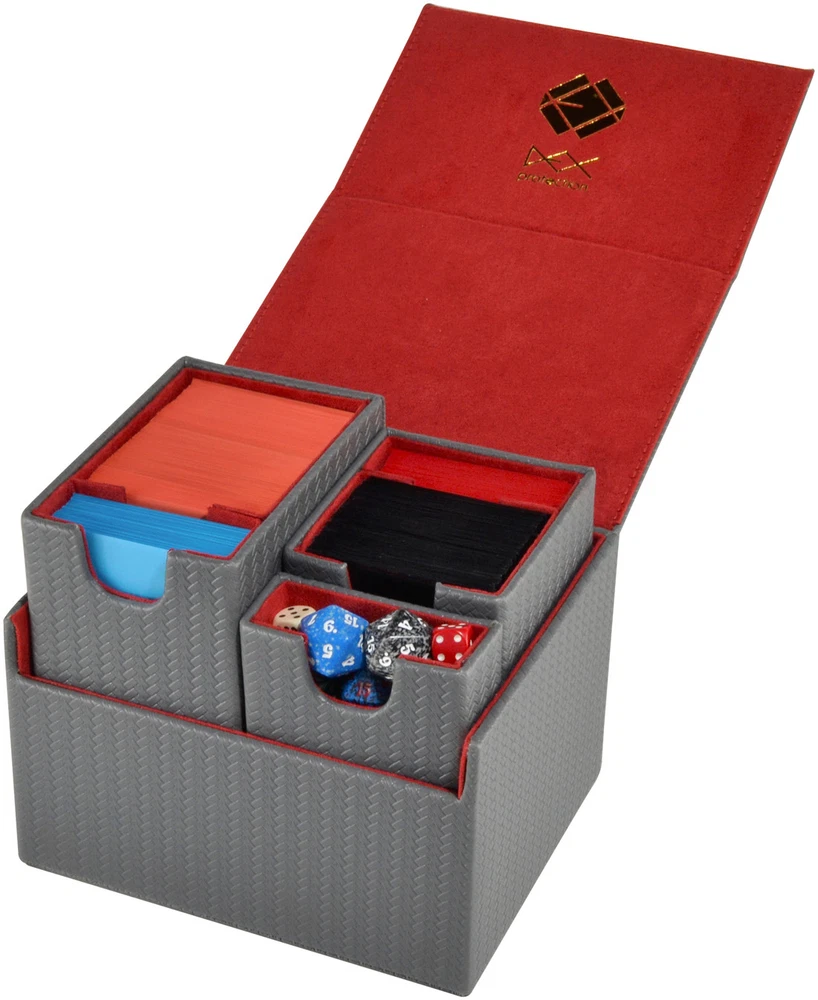 The included picture is a stock image • Three interchangeable, modular compartments • First compartment stores 100 double sleeved, standard sized cards plus additional room for accessories • Second compartment stores 75 double sleeved, standard sized cards • Third compartment for additional accessories • Real Suede interior • Superior magnetic closure **Does not include sleeves, dice or life counter** Our Proline Deck Boxes are our most advanced storage and protection systems to date. Each deck box has a modular design with separate removable compartments to easily organize your cards and accessories. The large model contains three separate compartments. The first is capable of storing 115+ double sleeved, standard sized cards. The second is optimized for storing 75+ double sleeved, standard sized cards while the third compartment comfortably holds additional accessories such as dice, tokens, sleeves, etc. Each compartment is fully removable and modular with other Proline models. We offer a combined shipping discount. Just add the items you are interested in to your eBay cart to determine your combined shipping cost and options. Thanks for shopping with ABUGames!