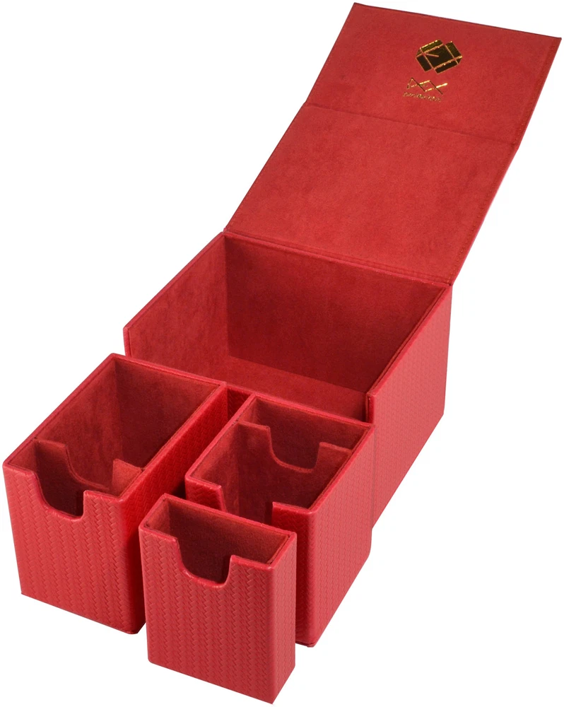 The included picture is a stock image • Three interchangeable, modular compartments • First compartment stores 100 double sleeved, standard sized cards plus additional room for accessories • Second compartment stores 75 double sleeved, standard sized cards • Third compartment for additional accessories • Real Suede interior • Superior magnetic closure **Does not include sleeves, dice or life counter** Our Proline Deck Boxes are our most advanced storage and protection systems to date. Each deck box has a modular design with separate removable compartments to easily organize your cards and accessories. The large model contains three separate compartments. The first is capable of storing 115+ double sleeved, standard sized cards. The second is optimized for storing 75+ double sleeved, standard sized cards while the third compartment comfortably holds additional accessories such as dice, tokens, sleeves, etc. Each compartment is fully removable and modular with other Proline models. We offer a combined shipping discount. Just add the items you are interested in to your eBay cart to determine your combined shipping cost and options. Thanks for shopping with ABUGames!
