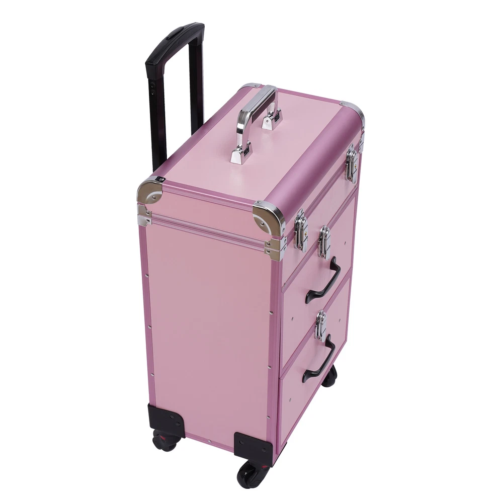 Description This is a movable multi-layered makeup case designed for professional beauty artists to make up anytime and anywhere. This rolling makeup case is constructed of high-quality aluminum alloy that is sturdy and durable. It has extra large capacity compartments and multi-layer drawers. This case is ideal for all people who love beauty or nail art. Key Features High-quality Materials: The frame of the makeup case is wrapped with high-quality aluminum alloy, which will not easily rust and fade. And the thicker, all-aluminum drawbar makes the case more stable, refusing to shake. Large Capacity: This makeup case has 3 layers, the top layer can store nail polish or lipstick; the bottom two drawers can store full-size cosmetics and beauty appliances, such as perms, manicure machines an Cosmetic Pro Rolling Makeup Train Case Aluminum Trolley Train Case Box Organizer Aluminum Rolling Makeup Trolley Train Case Box Organizer Salon Cosmetic Storage Description This is a movable multi-layered makeup case designed for professional beauty artists to make up anytime and anywhere. This rolling makeup case is constructed of high-quality aluminum alloy that is sturdy and durable. It has extra large capacity compartments and multi-layer drawers. This case is ideal for all people who love beauty or nail art. Key Features High-quality Materials: The frame of the makeup case is wrapped with high-quality aluminum alloy, which will not easily rust and fade. And the thicker, all-aluminum drawbar makes the case more stable, refusing to shake. Large Capacity: This makeup case has 3 layers, the top layer can store nail polish or lipstick; the bottom two drawers can store full-size cosmetics and beauty appliances, such as perms, manicure machines and light therapy supplies. This multifunctional product can meet your storage needs. Excellent Weight-bearing Capacity: The rectangular construction and aluminum alloy frame give the case a superb load-bearing capacity (up to 110.3 lbs). You can safely put all your hair and beauty tools on it. Sorted Storage: Beauty products with different functions and sizes are stored in the corresponding drawer and compartment, making the tools ranged orderly, so it is convenient for you to quickly find the tools you want. Easy to Move and Carry: The universal wheels are easy to move and very convenient, especially for nail salons and beauty salons that have a lot of tools and need to move frequently. And it comes with a telescopic pull bar (maximum length is 32.7inchs) and a top handle, which is easy to carry on trips and business trips. Stylish Appearance: This rolling make-up case gives a stylish and exquisite look with its simple construction and stylish pink. Such a retro make-up case will decorate your dressing room well and make a good impression when you are working outside. Secure & Reliable: The metal locks of the case protect the contents securely and the lockable design ensures security and privacy. Worry-free Service: We have been working hard to provide better service and quality for our customers, which is our goal. If there is any quality problem with our products. Please contact us in time. Details Transparent Storage Bag: The transparent storage bag on the inside of the lid allows for wet and dry storage, for example, you can store wet beauty eggs and powder puffs to avoid cross-contamination. Rounded Edges: The top of the cosmetic case has been designed with rounded corners rather than sharp edges to avoid scuffing. Reinforced Lock: Reinforced lock not only makes it convenient for you to open and close, but also does not affect the appearance, and solves the embarrassment of bursting when going out. Application This rolling make-up case is suitable for professional make-up artists, hairdressers, nail technicians, and beauticians in beauty centers, salons, private homes, parties, and other occasions. Specification Number of Layers: 3 Color: Pink Material: Aluminum Alloy Frame and Plastic Fireproof Board Panel Shape: Rectangular Processing Method: Frosted Rolling Wheel Style: Universal Wheel Carrying Parts: Retractable Handle Gross Weight: 9kg/ 19.8lbs Net Weight: 7.5kg/16.5lbs Package Size: 57*42*32cm/22.4*16.5*12.6inch Product Size: 36*23*58cm/14.2*9.1*22.8in Maximum Load:50kg/110.3lbs Package Included 1 x Makeup Case 4 x Universal Wheels 2 x Keys Notes Please allow the slight color difference caused by the shooting light and 1-3cm error due to manual measurement, and make sure you do not mind before you order. If you have any question , please contact us , and we will reply you as soon as possible. Payment Delivery details Terms of sales About us Contact us Payment We accept ebay payment 。 Fees such as import duties, taxes are not included in the item price or shipping costs. These charges are the buyer's responsibility. Delivery details Shipping: 2-9 working days to: USA Terms of sales We maintain high standards of excellence and strive for hundred percent customer satisfaction. Feedback is very important to us. We hope that you contact us immediately before you give neutral or negative feedback, so that we can address your concerns. It is impossible to address issues if we do not know about them! About us Your satis faction is our ultimate goal. We work hard to earn your trust and future business. Our certified technicians have tested each item before shipping. The unit comes with 1 year limited warranty on all manufacturing defects. a) If you receive a defective item, you may return it or ask for a discount. Please contact us within 14 days after you receive the package. b) What you returned must be intact and in its original packaging as re? u. Customer is responsible for shipping costs of the returned item. c) We will cover the cost of shipping back t with the shipping rate indicated in the registration page. We will send you a new unit or refund the full payment you paid. Thank you. Contact us Business Hour Business Hour: Monday To Friday: 8:30 AM to 