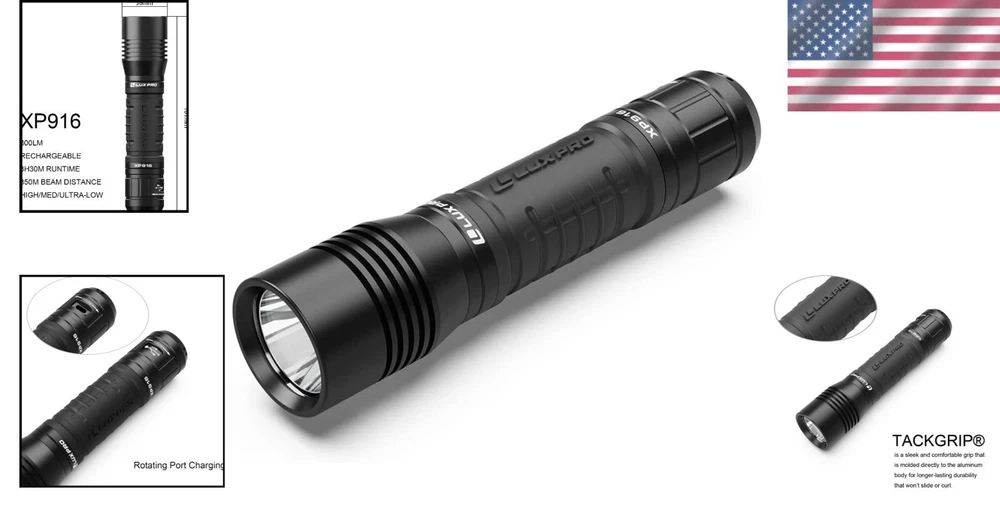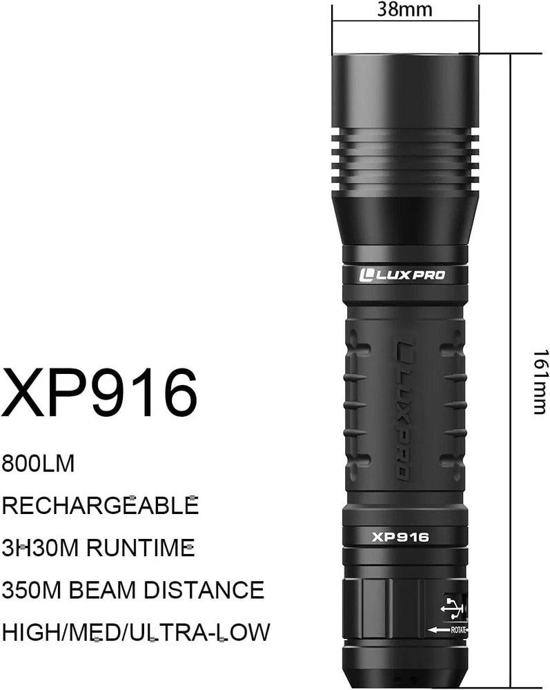 Number of Batteries: 1 Color: Black Model: Pro Series Material Type: Aluminum Operating Time: 5-10 Hours gtin13: Does Not Apply Specification Met: Aircraft-grade Anodized Aluminum (inferred) Special Feature: Rechargeable Number of Lights: 1-3 Additional Features: Rechargeable Material: Aluminum, Aircraft-Grade Aluminum, Anodized Aluminum Brand: Unbranded Brightness: 800 Lumen Battery Technology: Li-Ion Water Resistance Level: Waterproof Style Name: Tactical Power Source: Battery Bulb Base: E26 Number of LEDs: 1 UPC: Does Not Apply Voltage: 3.4 volts White Brightness: 800 Lumens Features: Rechargeable, Waterproof, Built-in micro-USB charge port, TackGrip, Innovative, Affordable Operating Range: 20 m Runtime: 18 Hours Supported Battery Types: Lithium Lumens: 800 lumen Lighting Technology: LED Item Dimensions D X W X H: 1.48"d X 1.48"w X 6.31"h Included Components: Batteries Included Light Source Type: Led Item Height: Rechargeable LED Flashlight Battery Type: Lithium-cobalt IP Rating: IP67 Item Length: Rechargeable LED Flashlight Personalize: No Type: Flashlight Finish Types: Matte Item Weight: 0.41 pounds