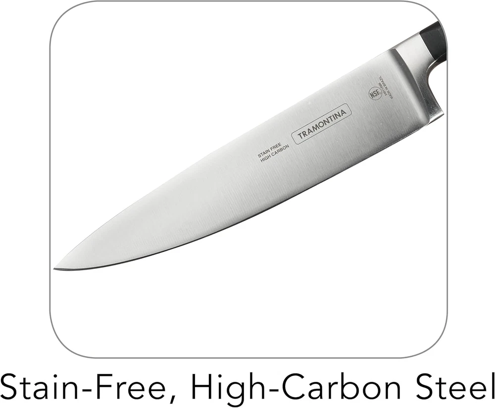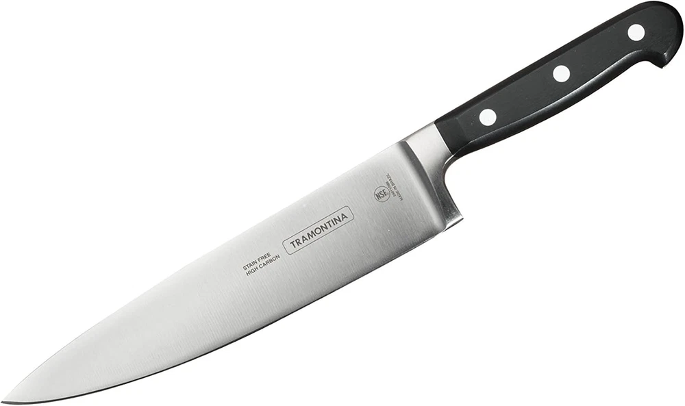 Store New Arrivals Add to Favorite View Feedback Contact Pro Series Forged 8-Inch Chef Knife, Stain-Free High-Carbon Steel Kitchen Knives for Cooking Description Item model number 8-Inch Chef's Knife Item Weight 4.8 ounces Style 8-Inch Chef's Knife Blade Edge Plain Color Black/Stainless Steel Country of Origin Brazil Is Dishwasher Safe Yes Blade Color Silver Global Trade Identification Number 10016017403083 Handle Material Nylon Construction Type Forged Blade Material High Carbon Stainless Steel Blade Length 8 Inches Item Length 13 Inches Is Discontinued By Manufacturer No Size 8" Premium High-Carbon Steel Construction: Crafted from stain-free, high-carbon forged steel for exceptional durability and edge retention, ensuring your knives stay sharp and reliable for everyday use. Enhanced Sharpness and Strength: Features ice-hardened blades (52 ± 2 HRc) with hand-honed edges for superior sharpness and effortless cutting performance. Ergonomic, Balanced Design: Each knife is equipped with ergonomic handles and a full tang design secured with triple rivets, providing superior balance, comfort, and precise control. Safe, Hygienic, and Easy to Clean: NSF-certified for food safety and sanitation standards, these dishwasher-safe knives are designed for effortless maintenance and peace of mind. Lifetime Warranty and Brazilian Craftsmanship: Proudly made in Brazil, this knife set is backed by a lifetime warranty, reflecting its high-quality craftsmanship and your satisfaction guarantee. Tramontina professional Series 8-in cook's knife is forged from a single solid piece of premium high-carbon Stainless Steel for unrivaled strength and durability. Blade is taper ground and precision-honed to a fine edge, while the heft of the full tang, combined with the bolster provide weight and rigidity for safety and superb balance. The design of the handle maintains the traditional style preferred by executive chefs With an ergonomic emphasis on perfect balance and a firm, comfortable grip. The cook's knife is part of Tramontina gourmet, a collection of premium products Engineered and manufactured with the finest design, materials and workmanship, outperforming similar products within the market and delivering the best quality and value to the cooking professional and enthusiast alike. ABOUT US We offer the best prices around on high quality products. Our E-store includes media such as books, movies, music and games while offering electronics, toys, sporting apparel, clothing, tools, general home, garden items and more. SHIPPING We are always working hard to ensure your package arrives as soon as possible. Please understand that some factors like weather, high postal traffic, and the performance of shipping companies are outside of our control. We offer free shipping to the lower 48 states and ship within 2 business days of payment, usually sooner. We do not accept P.O. Boxes. Please provide a physical address. For shipping outside of the continental USA, we only use eBay's Global Shipping Program.The item is shipped to KY and then sent to the rest of the world. International customers are responsible for all duties and taxes. Continue to check out in order to calculate costs for shipping the item to your country. Messages regarding eBay's Global Shipping Program MUST be directed at eBay EXCLUSIVELY. RETURNS We offer a 30-Day Return Policy on items which you are not completely satisfied with. You have the option for a full-refund or an exchange of the item. No returns are available on items shipped outside of the USA. PAYMENT We accept PayPal. CONTACT US This page content is yet to come Please ad us to your favorite seller and visit again later Thank You CUSTOMER SATISFACTION We try our very best to make sure every customer is completely satisfied. If there's a problem, message us! We're happy to help. WE ACCEPT Copyright © 2021 AutoDS. | All Rights Reserved