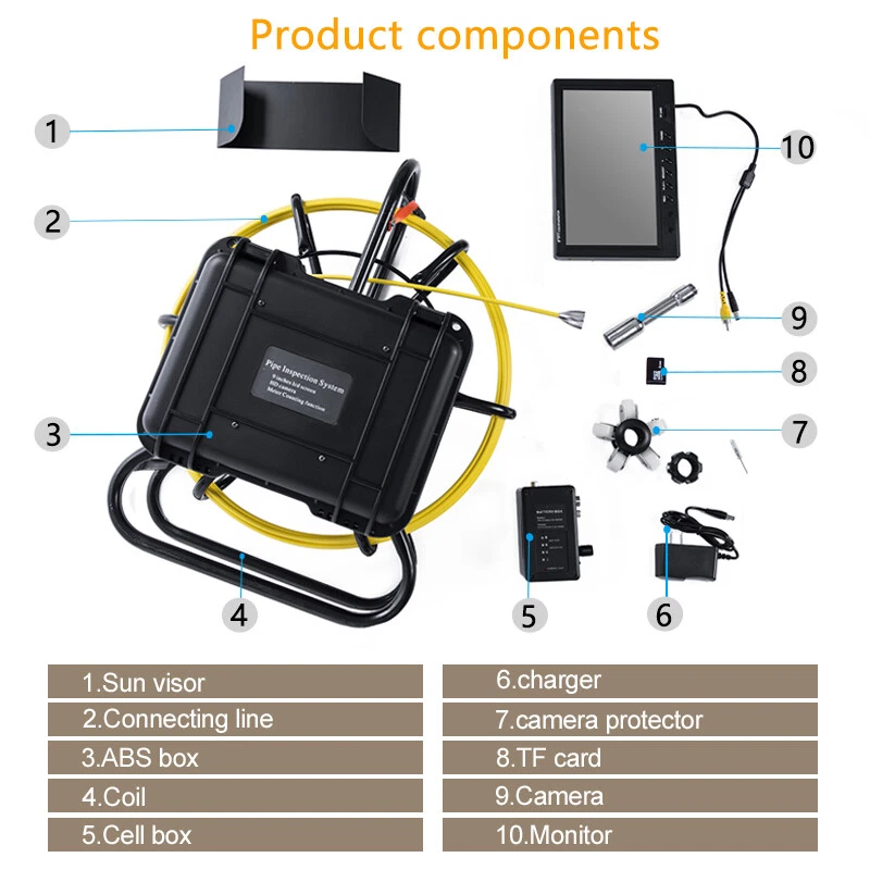 Specification Model: 9600A Charger Voltage: AC100-240V DC12.6V 1000MA Plug: US Standard Camera Shell Material: 304 Stainless Steel Camera: HD 1200TVL Battery Capacity: 4500mAh (Battery is Included) Battery Voltage: 12V Power Light Status: Red Light Indicates Charging Status, Green Light Indicates Full Charge Power Display: 25%, 50%, 75%, 100% LED Adjustable: Yes Visual Angle: 120 ° Camera LED: 12PCS LED Light Color: White Waterproof: IP68 Operating Temperature: - 20 ° C to 60 ° C/- 4 ° F to 140 ° F Cable Length: 30m/100ft Camera Size: 23 mm*120 mm/0.9*4.7 in Display Screen Size: 23*15.5*2.8cm/9*6*1in Lens Cover Diameter: 38mm/1.49in Diameter of Guide Roller: 90 mm/3.54in Gross Weight: 7kg/15.43lbs Net Weight: 6.5kg/14.33lbs Package Size: 51.2*44*29cm/20.08*16.54*10.6 Pro Sewer Camera With Stainless Steel Waterproof camera 9-inch Monitor HD 1200TV Description With a stainless steel waterproof camera, 9-inch monitor, and 5 hours of excellent endurance, the professional sewer camera can easily reach and detect wastewater system and various pipelines to meet the needs of search and rescue, pipeline unclogging, etc. Specification Model: 9600A Charger Voltage: AC100-240V DC12.6V 1000MA Plug: US Standard Camera Shell Material: 304 Stainless Steel Camera: HD 1200TVL Battery Capacity: 4500mAh (Battery is Included) Battery Voltage: 12V Power Light Status: Red Light Indicates Charging Status, Green Light Indicates Full Charge Power Display: 25%, 50%, 75%, 100% LED Adjustable: Yes Visual Angle: 120 ° Camera LED: 12PCS LED Light Color: White Waterproof: IP68 Operating Temperature: - 20 ° C to 60 ° C/- 4 ° F to 140 ° F Cable Length: 30m/100ft Camera Size: 23 mm*120 mm/0.9*4.7 in Display Screen Size: 23*15.5*2.8cm/9*6*1in Lens Cover Diameter: 38mm/1.49in Diameter of Guide Roller: 90 mm/3.54in Gross Weight: 7kg/15.43lbs Net Weight: 6.5kg/14.33lbs Package Size: 51.2*44*29cm/20.08*16.54*10.63in Bracket Size: 42*51cm/16.53*20.07in Box Height: 23cm/9.05in Package Included 1*Camera 1*Monitor 1*Connecting Line 1*Box 1*Charger 1*English User Manual All Accessories Needed for Use Application It can take photos and videos in confined spaces and is suitable for search and rescue, wilderness expeditions, scientific research, pipeline dredging, underwater cameras, waterproof miniature cameras, motor vehicle inspections, sewer pipe inspections, pipeline inspections, home appliance maintenance, archaeological discoveries, drilling industry, construction and more. It is suitable for plumbers, contractors, inspectors, engineers, municipal workers, and other professionals. Its camera has a diameter of 0.9 inches, so it is suitable for pipes with a diameter greater than or equal to 2 inches. Notes Please allow the slight color difference caused by the shooting light and 1-3cm error due to manual measurement. Please make sure you do not mind before you order. Payment Delivery details Terms of sales About us Contact us Payment We accept ebay payment 。 Fees such as import duties, taxes are not included in the item price or shipping costs. These charges are the buyer's responsibility. Delivery details Shipping: 2-9 working days to: USA Terms of sales We maintain high standards of excellence and strive for hundred percent customer satisfaction. Feedback is very important to us. We hope that you contact us immediately before you give neutral or negative feedback, so that we can address your concerns. It is impossible to address issues if we do not know about them! About us Your satis faction is our ultimate goal. We work hard to earn your trust and future business. Our certified technicians have tested each item before shipping. The unit comes with 1 year limited warranty on all manufacturing defects. a) If you receive a defective item, you may return it or ask for a discount. Please contact us within 14 days after you receive the package. b) What you returned must be intact and in its original packaging as re? u. Customer is responsible for shipping costs of the returned item. c) We will cover the cost of shipping back t with the shipping rate indicated in the registration page. We will send you a new unit or refund the full payment you paid. Thank you. Contact us Business Hour Business Hour: Monday To Friday: 8:30 AM to 5:00 PM (Beijing China time) Due to time zones, our reply to your questions may not be immediately. But within above working time, we will reply your email within 24 hours. If it's non-workdays, please kindly be patient and wait till Monday. Please contact us with ebay message. Please feel free to contact us if you have any questions. Monday To Friday: 8:30 AM to 5:00 PM (Beijing China time) Due to time zones, our reply to your questions may not be immediately. But within above working time, we will reply your email within 24 hours. If it's non-workdays, please kindly be patient and wait till Monday. Please contact us with ebay message. Please feel free to contact us if you have any questions. Brand Unbranded MPN n/a Type Pipe Inspection Camera Model 9600A Charger Voltage AC100-240V DC12.6V 1000MA Camera Shell Materia 304 Stainless Steel Camera HD 1200TVL Battery Capacity 4500mAh (Included) Battery Voltage 12v Power Display 25%, 50%, 75%, 100% Waterproof IP68 Camera LED 12PCS LED Operating Temperature - 20 ° C to 60 ° C/- 4 ° F to 140 ° F Cable Length 30m/100ft