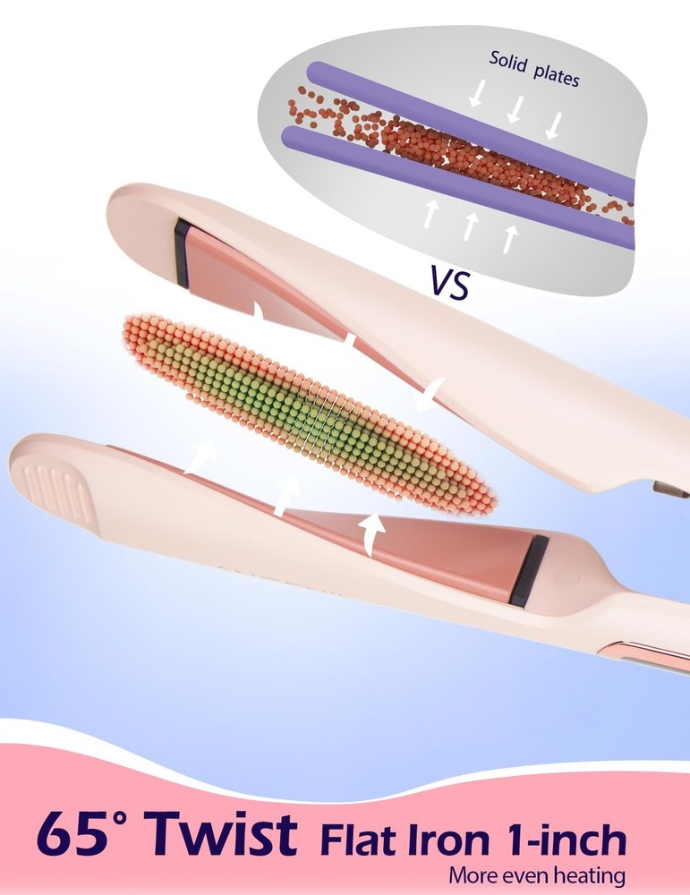 Pro Twist Flat Iron 1 Inch, Round Pink Dual Voltage Hair Straightener and Curler 2 in 1, Tourmaline Ceramic Ionic Hair Curler with Anti-Scalding Silicone Mat Pad, 30s Fast Heating, LCD Display 🌟【SALON-LEVEL PRO TWIST HAIR STRAIGHTENER】Our straightener adopts advanced PTC heating technology, and focuses on women's hairdressing, which can quickly and easily create professional salon level styling. It has 11 levels of adjustable fine temperature ranging from 250 ° F to 450 ° F, which can intelligently maintain a constant temperature, protect hair from damage, and enhance the natural luster of hair 🌟【MULTI 6-IN-1 TOOL】 Our hair straightener features a unique twisted panel design, evenly heated panels, and a circular appearance design. Whether you have coarse, fine, or short hair, it can be easily straightened or curled. Gently sliding over your hair can achieve a glossy, non frizzy surface, creating a professional sandron level look 🌟【Advanced Nursing Technology】This straightener contains 70 million negative ions, which can release a large amount of negative ions, neutralize static electricity, lock in hair moisture, provide better hair care, restore hair health, enhance hair luster, and reduce hair frizz 🌟【DUAL VOLTAGE TRAVEL FLAT IRON】The voltage range of 110V-240V is globally applicable, equipped with a heat-resistant bag for easy storage, and a lock buckle design for easy carrying in your bag. It heats up quickly in 30 seconds, saving you time. In addition, we have a 60 minute automatic shutdown function, suitable for going out to parties or traveling. 🌟【EASY TO USE】The Pro straightener is thoughtfully equipped with a temperature. The rotating rope design allows for 360 degree rotation to prevent tangling