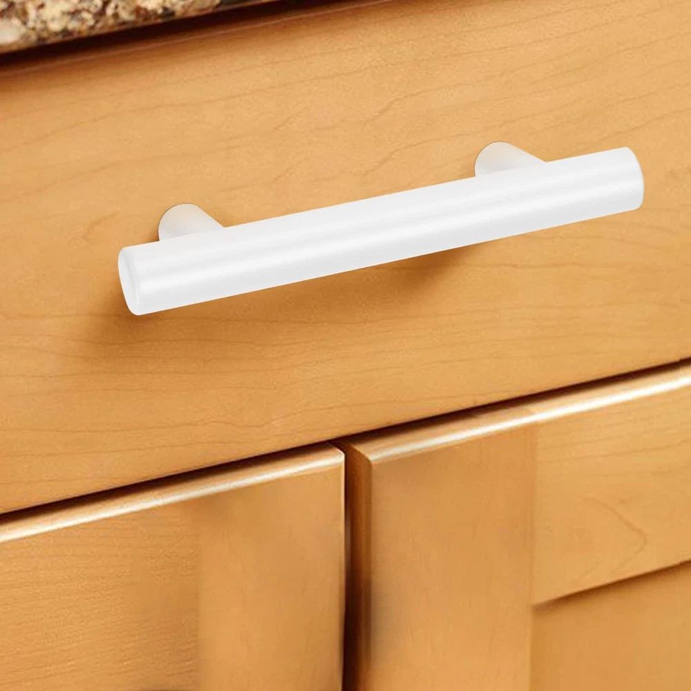 White cabinet handles Made of High Quality Stainless Steel with beautiful looking, durable and strong.Make cabinet hardware a part of your home decor today. 【MEASUREMENT】: 2-1/2 inch(64mm), Total Length:4 inch(100mm), Diameter:1/2 inch(12mm) Projection:1-1/4 inch(32mm) 【FUNCTION】Cabinet handles set, suitable for different styles of bedroom dressers, cabinets, wardrobe, wine cabinet, locker. 【SCREW】:The screws included are M4X25mm,1" length will fit for 14mm(0.55")-19mm(0.75") thickness board. 【WARRANTY】:Please feel free to let me know if you have any question, all problems will be solved under our service.