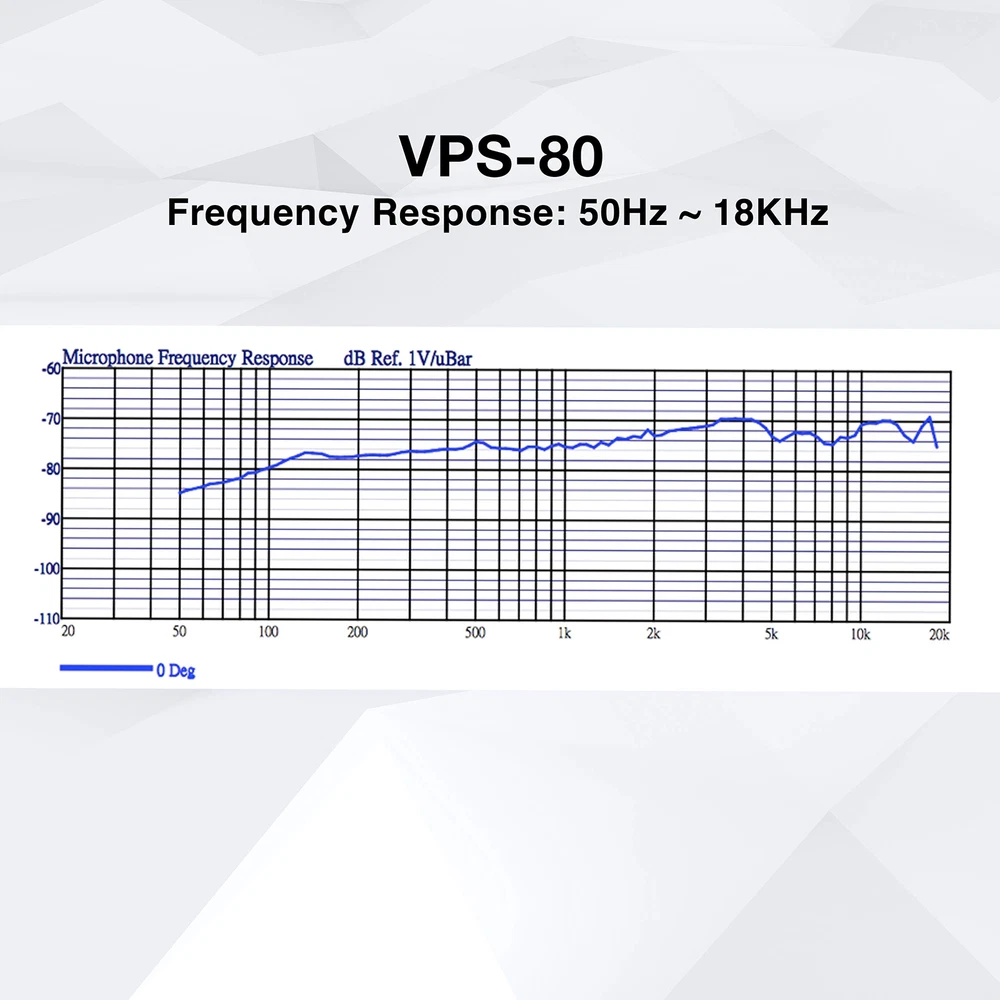 The American Audio VPS-80 is great both on stage and in the studio. Its ultra-smooth frequency response accurately provides clear, natural sound while is super cardioid pattern ensures maximum gain before feedback. This live stage performance microphone comes with microphone, microphone clip, microphone cable and storage bag. Neodymium Capsule Polar Pattern: Super cardioid Frequency Response: 50Hz ~ 18KHz Impedance: 300Ω ± 30% Sensitivity: -74 ± 3dBV/µbar Dimension (LxW): 2” x 7.25” / 52 x 182mm Weight (w/o cable): .6 lbs. / .28 kg. What’s Inside: 1x VPS-80 Microphone 1x Microphone Clip 1x Microphone 15-foot (4.5M) XLR to XLR Cable 1x Storage Bag Live Stage Performance Microphone comes complete with microphone, microphone clip, microphone cable and storage bag.