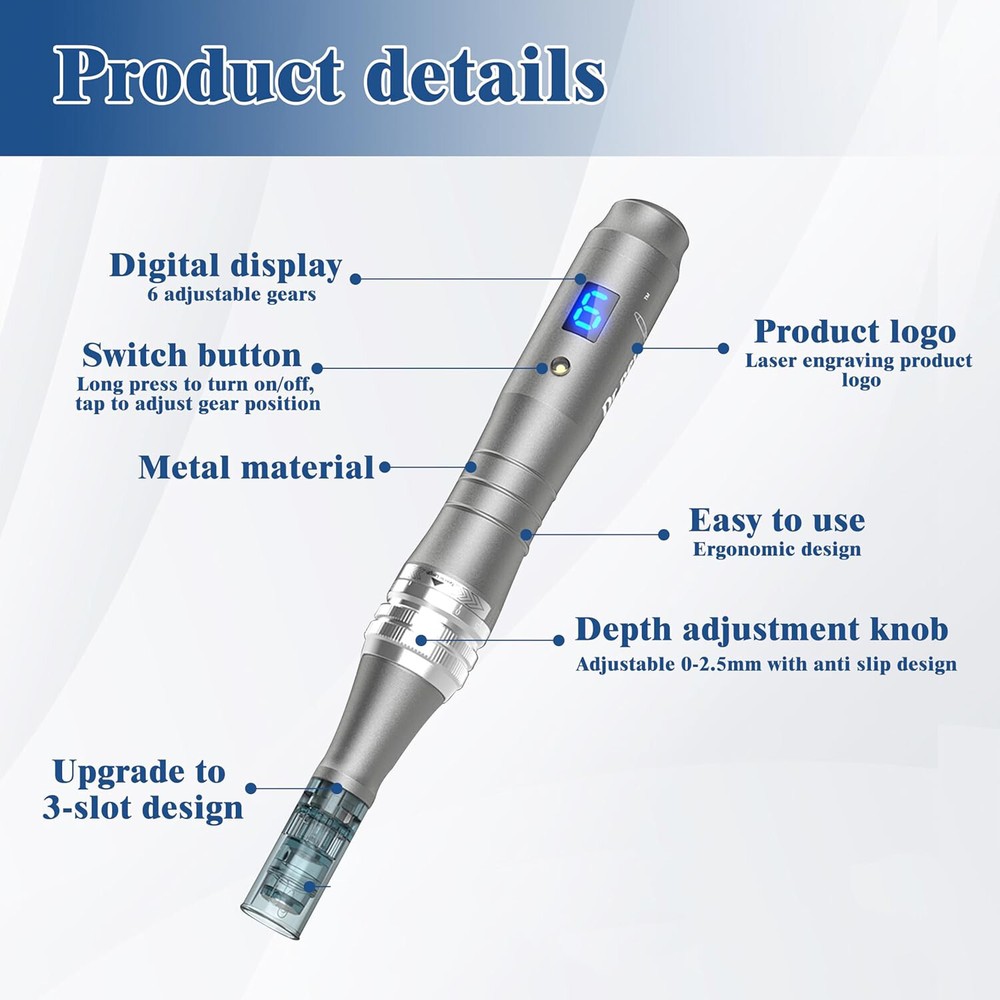This microneedling pen is a game-changer for my skincare routine! The 6 adjustable depth settings make it perfect for targeting fine lines, wrinkles, and pores. It’s cordless, easy to use, and gives salon-quality results at home. My skin feels tighter and looks refreshed after just a few uses—worth every penny!