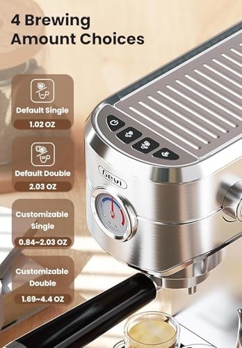 Type: Does Not Apply Item Height: 1 EAN: Does Not Apply Product Dimensions: 12.3"D x 5.5"W x 12"H gtin13: Does Not Apply Item Width: 1 Included Components: 20Bar Espresso Machine with Milk Frother x 1, Portafilter x 1, 51 Voltage: 120 Volts Number of Items: 1 Model: Does Not Apply UPC: 767791886953 Coffee Input Type: ground_coffee Special Feature: Buit-in Pressure Gauge, Adjustable Shot Volume, Pre-infusion, Aut Human Interface Input: Buttons Item Length: 1 Item Weight: 8.8 pounds Date First Available: April 21, 2025 Item model number: ECMG0-SS0A1 Materials Sourced From: China Customer Reviews: 4.4 out of 5 stars MPN: Does Not Apply Specific Uses For Product: Making Espresso-based Drinks and Americanos Style: Espresso Machine Model Name: ECMG0-SS0A1 Filter Type: Reusable Brand: Does Not Apply Color: Silver