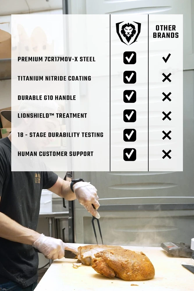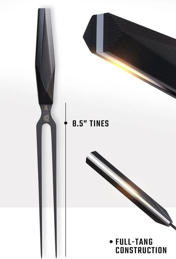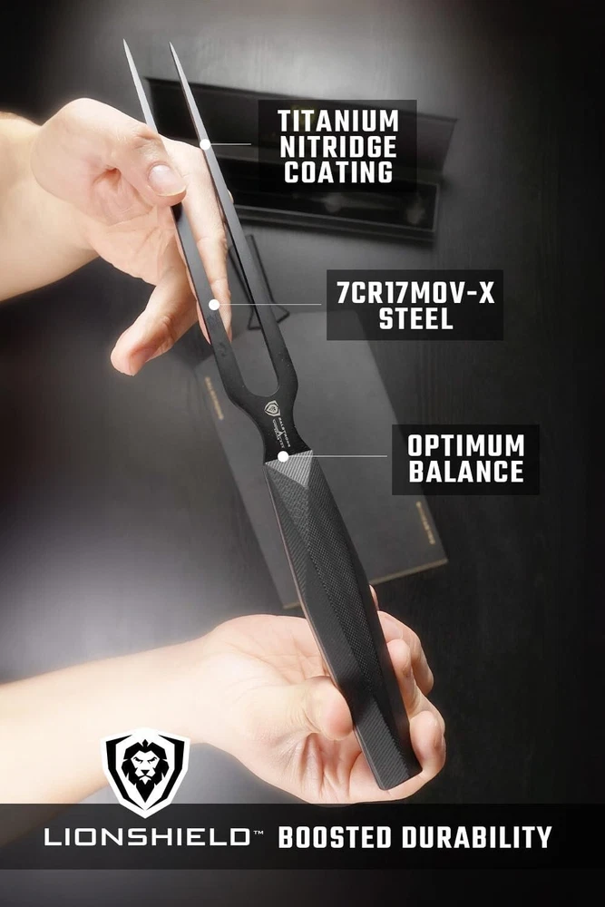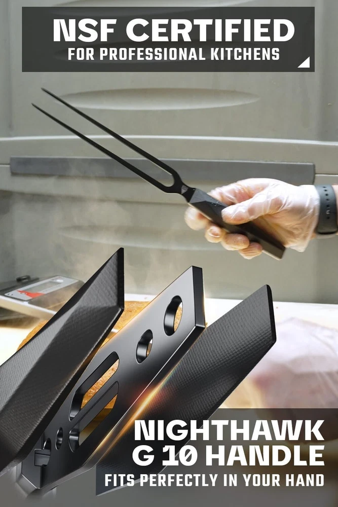 Finish Type: Black Titanium Nitride Coated Handle Material: G10 Features: Dishwasher Safe, NSF Certified, Non-reflective Coating, Robustness, Corrosion Resistance, Non-stick Properties Is The Item Dishwasher Safe?: Yes UPC: Does not apply Care Instructions: Easy to Care For Brand: Unbranded Type: Meat Fork Color: Black Material Type: High Carbon 7cr17mov-x Vacuum Treated Steel Style: Sleek Department: Adults Material: Steel, High Carbon 7CR17MOV-X Steel, Titanium Nitride, Fiber-resin, G10 gtin13: Does not apply Finish Types: Black Titanium Nitride Coated