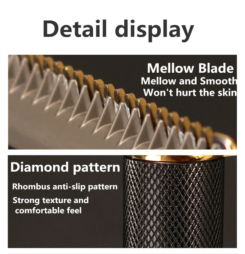 Kemei Professional Beard Trimmer T-Blade Hair Clipper Barber Cordless 100% Original Guarantee Professional Kemei 1971 Black Color with Gold Blade Description: The Kemei 1971 features a quite, yet very powerful motor. The carbon steel T-blades are designed for zero gapped and close cutting capability. The trimmer has a powerful rotary motor featuring 6,200 revolutions per minute. Perfect for outlining hair to make designs and zero fade trimming. This clipper features a cross diamond metal design, providing a superior grip. Features: R-Shaped Cutter Head: Smooth outline and carving, as well as for 0 shaver trimmer Stainless Steel Blade: Exquisite stainless steel provides durability and smooth trims Quiet & Powerful Motor: 6,200 RPM (revolutions per minute) Battery Light Indicator: Informs clipper battery status Push Button Start: Button at the bottom of device turns device on and off Specifications: Battery: 700 mAh Power: 5W Use Time: 120 minutes Charge Time: 2 hours Material: Stainless Steel Package Include: 1x Hair clipper 1x Cleaning brush 1x USB Rechargeable Battery Charger 4x Limit combs (1.5 mm, 3mm, 6mm, and 9 mm) 1x Lubricating oil Shipment 1. We will send out your orders in one day as soon as we receive your payment. 2. Delivery ways: SpeedPAK, China POST,YANWEN, EMS, USPS,UPS,TNT, DHL etc. 3. Delivery time:10-15 days to USA, 20-30 days to UK, Germany, French, Australia, Canada, etc, Over 30 days to other countries. Return If the item you received is damaged or defective, Please contact us immediately. We will free exchange or refund. We will pay the return shipping costs if the product is defective or the return is a result of our error. If the item is returned for any other reason you are responsible for the return shipping charges. You can return your purchase for up to 15 days from the date of delivery. No refund will be issued if the product shows signs of use. Returned package must be in the original packaging, everything must be in new condition, No missing parts. Our guarantee does not cover accidental damage or wear of product caused by customer. Thank you very much for your understanding! Feedback 100% satisfaction is our aim to pursue. If you have any concerns, please contact us firstly by email. • Please leave me FIVE star POSITIVE feedback if you are satisfied with our items. • Please CONTACT me immediately before leave us neutral feedback or negative feedback, We will provide s olutions and try our best to resolve any problems for you. Contact Us Service is our first priority ! If you contact us immediately after placing the order, we will make every effort to assist you with your change request. Unfortunately, we can not make changes or cancel an order once it has been shipped out. Any help, needs or questions, please do not hesitate to contact us. We will quick response within 24 hours from Monday to Friday. Thank you for buying from our store! On May 26, 2025 at 19:53:16 PDT, seller added the following information: