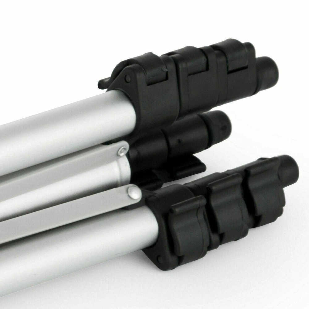 Features: -Portable and flexible, ideal for outdoor, travel, and timer shoots. -Built-in bubble level, making your tripod perfectly leveled. -Convenient grip handle moves the head at different angles. -Compatible with all kinds of smartphones. -360-degree horizontal and 90-degree vertical swivel with 3-way head. -With grip for adjusting head position. -Solid Safety 4 Section Aluminum Legs with non-slip rubber feet. -The tripod is lightweight and mobile with its aluminum alloy legs. -Lightweight and compact, easy to install and operate. Specification: Product type: Tripod Stand. Color: Silver&Black Material: Aluminum. Screw Size: 1/4" Maximum Load: 5.5lb. Maximum Height: 3.77ft/46 inches. Folded Length: 1.13ft/14 inches. Head Type: 360-degree Swivel Fluid Head. Leg Lock Type: Self-aligning metal quick-flip leg locks. Weight: 15.1 oz Package Included: 1 x Tripod Stand. 1 x Universal Holder for Tripod. 1 x Nylon Carry Bag