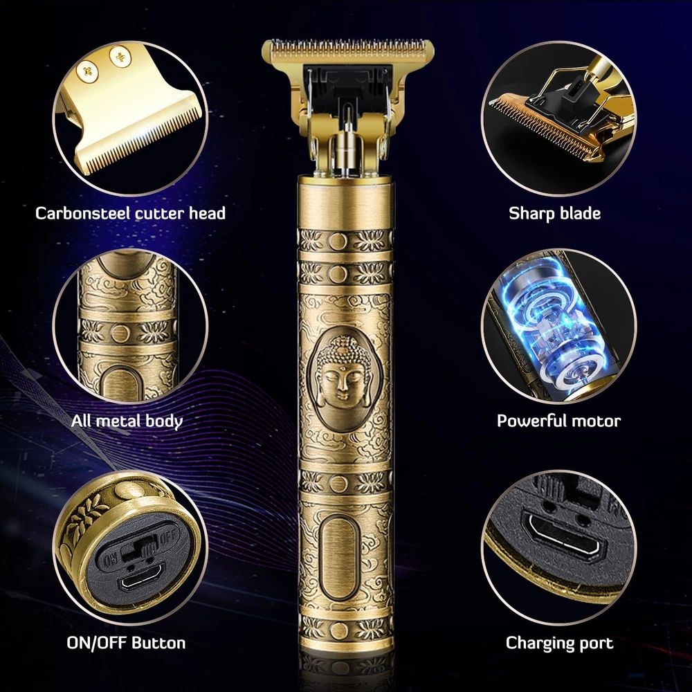 T Blade Trimmer: The professional hair trimmer’s blade is made of carbon steel and self-sharpening ceramic, it is easy to trim hair, beard, sideburns, face, and body hair. The R-shaped obtuse edge design makes gentle contact with the skin, can better protect your skin. Whether it is a beginner or a professional hairdresser, it can be easily used. USB Quick Charge: Trimmer for men is equipped with a powerful Lithium-ion battery, working time of at least 180 minutes after 2.5 hours full charged. The cordless design is convenient for you to carry with during your travel or for home use. You can connect USB adapter, laptop, car charger, power bank and other USB powered devices. Powerful Motor: The beard trimmer with a powerful rotary motor, achieve quick trimming. Stronger power and less noise. It is powerful and sharp, cuts hair evenly, with low noise control at the same time. [Note]: Only the cutter head can be washed with water. Please do not let water into the body. Multifunctional Hair Cutting Trimmer: The edgers clipper has four different lengths of guide combs (1.5mm, 2mm, 3mm, 4mm), you can use it according to the length of hair you want. Perfect for hair cutting, beard trimmer, shavers for men, liners for men clippers, edgers clippers for men, and so on. Ergonomic Design & Great Gift: T Blade Trimmer is stylish and lightweight, easy to carry and comfortable to hold. All-metal body, wear-resistant, sturdy. It is the great gift for men, husband, friends and father on New Year's Day, Christmas, Birthday, Valentine's Day and Father's Day. Product Description Professional Zero Gapped Hair Clippers for Men Our upgraded T-blade attachment allows for easy trimming, grooming, and touch-ups. The Cordless Hair Clipper comes with a set of multifunctional ear spoons tools. Zero Gapped Trimmer with stylish and lightweight, easy to carry and comfortable to hold Whether it is a beginner or a professional hairdresser, it can be easily used. Powerful Motor The edgers trimmer clippers equipped with a powerful rotary motor, achieves high-performance trimming. Stronger power and less noise. Upgraded Version Blade The sharp titanium ceramic blades, easy to trim hair, beard, sideburns, face, and body hair. Easy to Clean Simply rinse the blade under running water to clean it quickly and keep it tidy at all times. Please wipe clean and keep dry after watering.