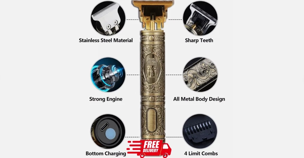 Professional Hair Clippers Trimmer Shaver Clipper Cutting Beard Cordless Barber Features: T BLADE TRIMMER DESIGN: The T blade is made of carbon steel and ceramic, it's very sharp to cut your hair off without hurting your skin. USB CHARGING: The cordless design is convenient for you to carry with during your travel or for home use. ERGONOMIC METAL DESIGN: Slim body design makes it easy to handle with ,the all metal body design makes it sturdy and durable to use compared with traditional plastic hair clippers. WIDE APPLICATION: Used for cutting your hair and removing your beard, the hair under your arms , your hands, legs, or your body hairs. Perfect for men women children or elderly. Note: Due to manual measurement, there will be an error of +/- 5 mm. Due to the shooting angle and the display, the goods may have a color difference from the picture. Package Included: 1 x Hair clipper 1 x USB charging cable 1 x Cleaning brush 4 x Limit combs