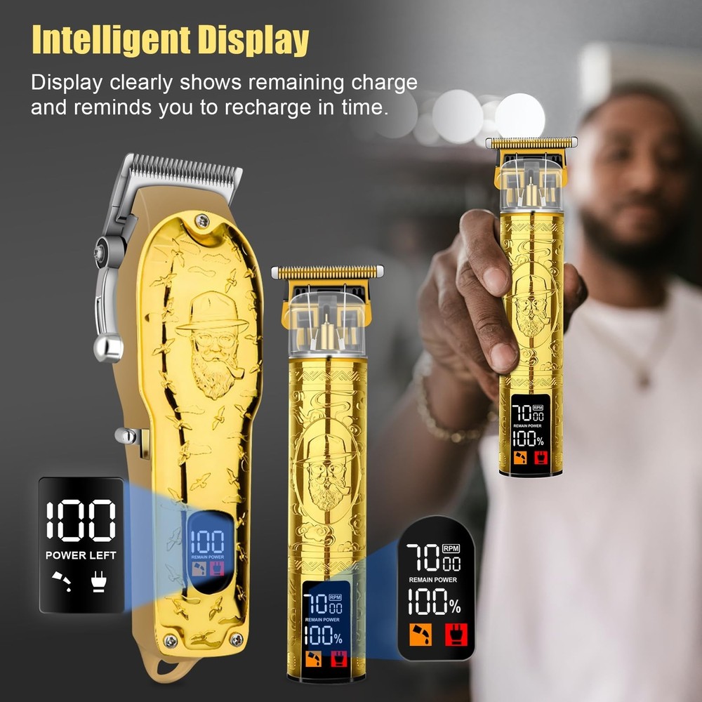 This hair clipper set is a game-changer for at-home grooming! The gold finish looks sleek, and the cordless design makes it super convenient. The lithium-ion battery lasts long, and the included accessories like the T-blade trimmer and guide combs give salon-quality results. Easy to clean and use—perfect for men who want a sharp, professional look without the hassle. A great gift, too!