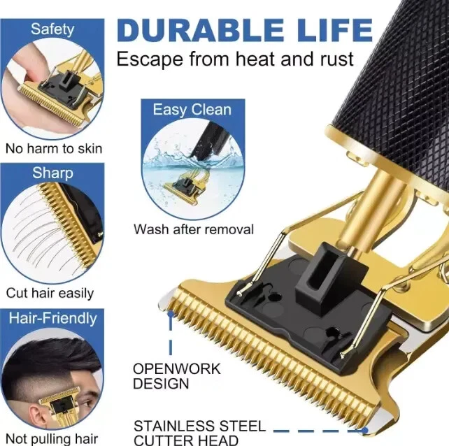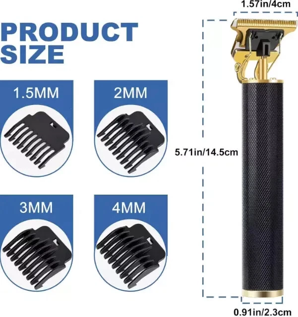 Cordless Professional Hair Clippers Trimmer Kit Men Cutting Machine Barber Salon US Warehouse - FREE & FAST Shipping in USA Product Description: 【T-Style Zero-Gap Cutter Head】 Adorned with a precision-crafted T-shaped stainless steel cutter head, 4cm wide, this clipper seamlessly blends artistry with function. Its razor-sharp blades glide through hair effortlessly, ensuring a smooth cut without any skin irritation. A protective cover shields the cutter head from wear, allowing for hassle-free cleaning under running water. 【Mighty Copper Core Motor】 Powered by a robust copper core motor, this beard trimmer operates smoothly, conquering even the toughest hair with ease. Its 8500 rpm speed, coupled with low-frequency vibrations and a whisper-quiet operation under 60 decibels, ensures a serene grooming experience. 【Precision Length Control】 Embrace versatility with 4 adjustable guide combs (1.5mm, 2mm, 3mm, 4mm), tailored to your every styling need. Achieve salon-worthy precision at home, effortlessly controlling hair length for a personalized look. 【USB-C Convenience, Long-Lasting Power】 Equipped with a 1200mAh high-capacity lithium battery, this hair clipper ensures 180 minutes of cordless freedom after just 3 hours of charging. Its USB-C port seamlessly connects to various devices, making it the perfect travel companion for families and globetrotters alike. Note: Optimal charging with a 5V/1A adapter is advised. 【Elegant Portability, Effortless Handling】 Boasting a sleek, lightweight design, this hair clipper slips seamlessly into your travel bag. Its ergonomic handle and one-button operation under the fader add to its user-friendliness, ensuring a safe and comfortable grooming session, whether at home or on the go. Cleaning is a breeze – simply rinse the blade under water, remembering not to submerge the entire clipper. Feedback: 1.Any question for your order, please contact us in time, we will reply to you within 24-48 hours and give you a satisfactory answer. 2.If you are satisfied with our products and services, hope to take up a little precious time to leave feedback reviews for our products.Thanks! 3.Your satisfaction is our effort. Welcome to order again! Have a great day! Our Policy: 100% Satisfaction Guarantee 30 Days Return and Refund Guarantee Free and Fast Shipping in USA, US Warehouse 15% of restocking fee will be charged for return it