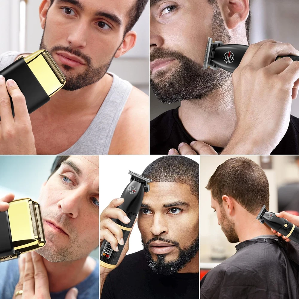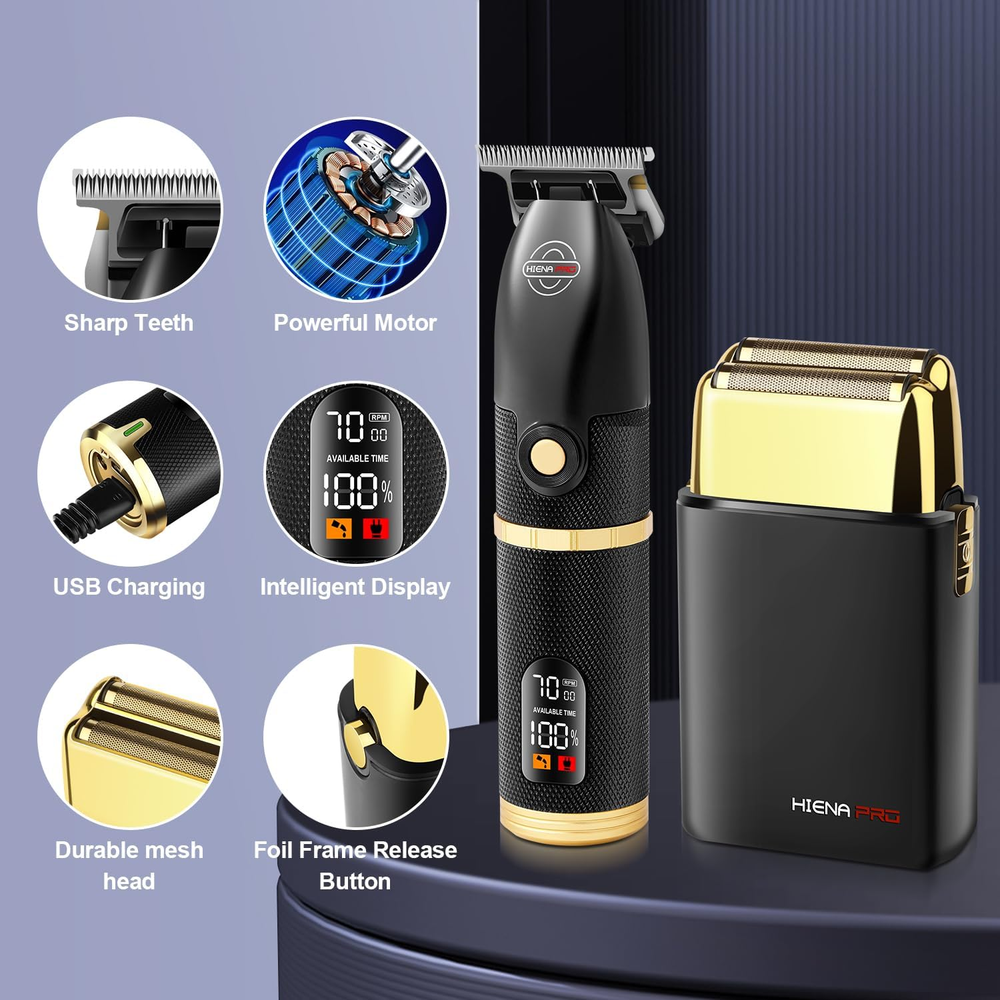 Store New Arrivals Add to Favorite View Feedback Hair Trimmers and Foil Shaver Kit for Men, Professional Cordless Barbers Hair Clippers with LCD Display, Black Gold Zero Gapped Trimmer, Double Foil Shaver, Gifts Description Item model number HI-M6+808 Unit Count 1.00 Count Product Dimensions 7.28 x 4.72 x 1.38 inches; 1.96 Pounds Country of Origin China Model Name HIENA PRO Battery Description Rechargeable Manufacturer HIENA PRO Brand HIENA PRO Included Components Battery High Carbon Steel Blades: Durable and sharp blades made from high carbon steel for clean cuts and shaving. Multifunctional Design: Includes a foil shaver and hair trimmer for all your grooming needs in one kit. Cordless Operation: Runs on rechargeable batteries for cordless use and convenience. LCD Display: Shows battery life and other information for easy operation and monitoring. Compact and Lightweight: Slim and lightweight design for easy handling and portability. Product Description HIENA PRO Hair Trimmers and Foil Shaver for Men Kit 1 Sharp Blades 2 Double foil Blade 3 Smart LED Display 4 Powerful Motor 5 HighCapacity Battery Black Gold Trimmer Shaver HIENA PRO Barber Set Smart LED Display Superb battery life Powerful Motor Sharp Blades Smart LED Display Superb battery life Powerful Motor Sharp Blades Smart LED Display Superb battery life Powerful Motor Sharp Blades Smart LED Display Superb battery life Powerful Motor Sharp Blades Black Gold Clippers Set Transparent Hair Clippers Dragon Clippers Set Black Golden Set Can the HINEA PRO wireless hair clippers kit be used while charging? Sure, Our Hair Trimmer Shaver Set can be used while wired and wireless. Are the blades of the HINEA PRO barber set universal and where can I buy them? If you need a replacement blade, you don't need to buy one, we'll send you a new one blade right away. Is it only suitable for barber use only? No, this barber recommended cordless hair clipper is perfect for home use as well. 1 Hair Trimmer & shaver set 2 Best Gift Choice ABOUT US We offer the best prices around on high quality products. Our E-store includes media such as books, movies, music and games while offering electronics, toys, sporting apparel, clothing, tools, general home, garden items and more. SHIPPING We are always working hard to ensure your package arrives as soon as possible. Please understand that some factors like weather, high postal traffic, and the performance of shipping companies are outside of our control. We offer free shipping to the lower 48 states and ship within 2 business days of payment, usually sooner. We do not accept P.O. Boxes. Please provide a physical address. RETURNS We offer a 30-Day Return Policy on items which you are not completely satisfied with. You have the option for a full-refund or an exchange of the item. No returns are available on items shipped outside of the USA. PAYMENT We accept PayPal. CONTACT US This page content is yet to come Please ad us to your favorite seller and visit again later Thank You