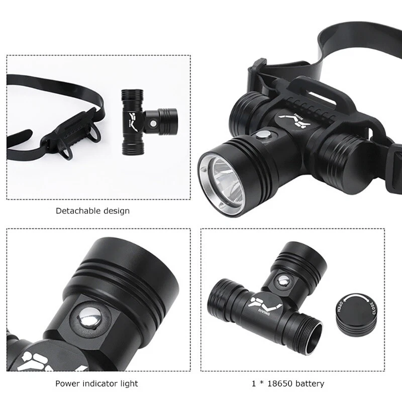 Purpose : Diving Model Number : Diving headlight Switch Mode : High/Middle/Low Beam Angle : 180° Waterproof : Yes Light Source : LED Bulbs Certification : ce,CCC Battery Type : Lithium Metal Origin : Mainland China Item Type : Headlamps Certification : CE,CCC Diving Headlamp 300 Meters Underwater Headlight Led Scuba head Flashlight Torch Waterproof IPX8 18650 Lamp Light specification: 1. Flashlight type: diving headlight 2. Transmitter type: LED 4. Waterproof: 100-300 meters underwater 5. Battery configuration: 1 x 18650 battery (including battery) 6. Mode: 3 modes (high-low-strobe) 7. LED life: 100,000 hours 8. Material: aluminum alloy 9. Lens: coated glass lens 10. Reflector: aluminum reflector 11. Shell color: black Features: 1.Internal wiring applies the high efficient booster circuit, working voltage is wide and can utilize the batteries in the largest extent 2.Suitable for outdoor sport, outdoor activities, such as, cycling, climbing, and camping, Diving 3.Suitable for most indoor like home maintenance and outdoor activities like camping, fishing, hiking, night flying, map reading, sailing, caving and Dive 4.Waterproof - It is the flashlight for diver diving underwater working 5.Special battery power warning to better understand the battery situation