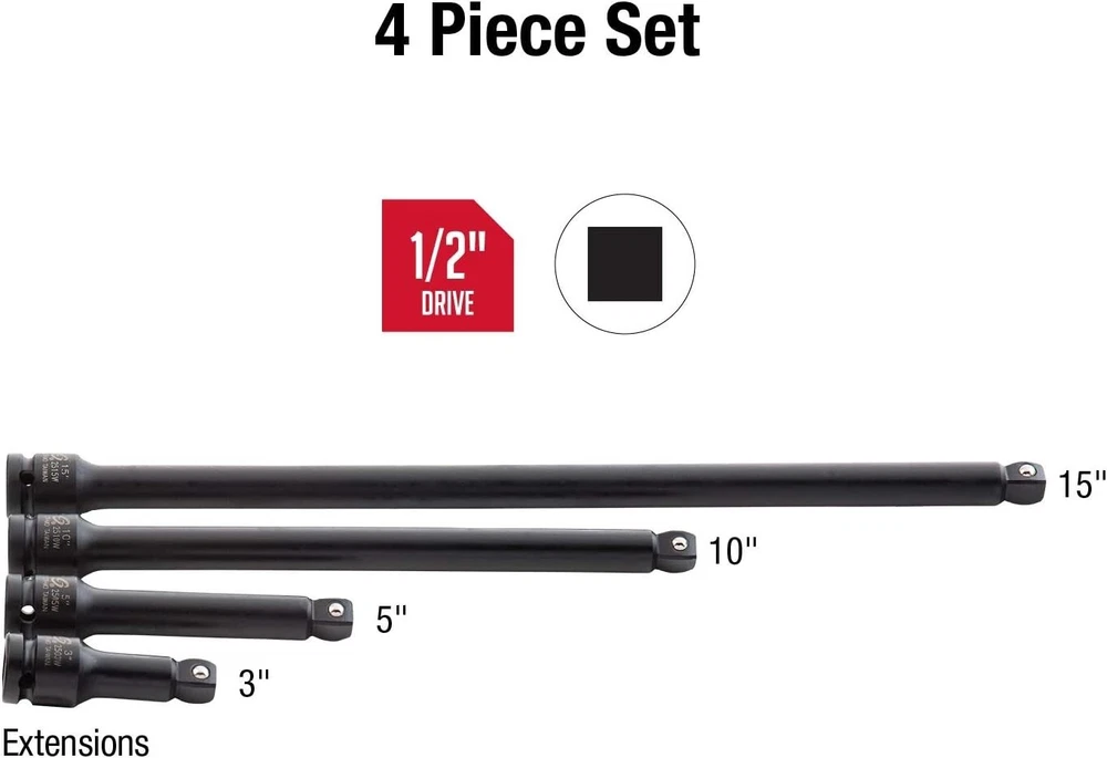 Professional Grade Wobble Drive Extensions - 4 Piece SAE Set with Storage Case ‹ › ‹ › ‹ › ‹ › ‹ › ‹ › ‹ › Professional Grade Wobble Drive Extensions - 4 Piece SAE Set Elevate your automotive repair experience with this premium 4-piece SAE set of wobble drive extensions, meticulously crafted for strength and durability. Perfect for professionals and enthusiasts alike, this set is the ultimate companion for any high-torque impact tool. Key Features: CR-MO Steel: Crafted from high-grade chromium-molybdenum steel, these extensions provide unparalleled strength and flexibility to withstand high torque impact tasks. Radius Corner Design: Innovatively designed to reduce wear and enhance torque efficiency, this feature places force directly on the fastener walls, extending their lifespan. Wobble Drive: A unique 15-degree offset in all directions allows for greater maneuverability in tight spaces. Steel Ball Retainer: Securely designed on the male end to keep sockets in place, preventing accidental drops and ensuring safety during use. Dual Size Markings: Permanently marked with laser etching and roll stamping for easy and instantaneous identification of sizes. Storage Tray: A dedicated, heavy-duty blow molded storage case is included for convenient transport and organization. Meets ANSI Standards: Each extension has been rigorously tested to ensure peak performance and durability. Set Includes: 3” Extension 5” Extension 10” Extension 15” Extension Why Choose Our Wobble Drive Extensions? This 4-piece set emphasizes quality, versatility, and longevity, making it an essential addition to any mechanic's toolkit. Whether you’re tackling routine maintenance or complex automotive repairs, these extensions offer the reliability you need to get the job done with confidence. Invest in tools that work as hard as you do. Order your Professional Grade Wobble Drive Extensions 4 Piece Set today and experience the peak of performance and convenience! Shipping Free & Fast Shipping - We offer free shipping to most of the USA with a normal delivery time of 3-7 days. However, due to the current situation, additional delivery time (up to 3 weeks) may be required for some items. Alternative Carriers - We may use alternative carriers (e.g. USPS, FedEx, UPS, etc.) to ensure your package arrives safely and on time. Due to the use of multiple carriers, we are unable to provide a tracking number automatically. Handling Time - Orders are processed and shipped within 1-2 business days of receiving cleared payment. Shipping Restrictions - Shipping to Alaska, Hawaii, Puerto Rico, Guam, and other US territories may incur shipping charges or delivery restrictions. Please contact us before ordering, or your order can be refunded/cancelled. State Restrictions - There may be restrictions based on your state of purchase. For example, certain items may not be shipped to California due to state regulations. Contact for Tracking Updates - If you require tracking updates or have any concerns about the delivery of your order, please feel free to contact us, and we will be happy to assist you. Return Please see our eBay Return Policy. Thank you. Payment We accept all major credit cards, PayPal, and Apple Pay for your convenience. Your payment information is secure and encrypted to ensure a safe and seamless transaction. Please complete your payment within 3 days of purchase to avoid any delays in shipping. Feedback Your feedback is extremely important to us. We strive to provide the best products and customer service possible. If you are satisfied with your purchase, please take a moment to leave us a positive review. If you have any concerns or issues with your order, please contact us before leaving negative feedback. We are committed to resolving any problems and ensuring your satisfaction. Contact Us If you have any questions or concerns, please feel free to reach out to our customer support team. You can contact us through the eBay messaging system. We are available Monday to Friday, 9:00 am to 5:00 pm EST, and we will do our best to respond to your inquiry within 24 hours. Thank you for supporting our small family business! Manufacturer Part Number: Impact Extension Set UPC: Not Set Unit Quantity: 4 Tools Included: Extension,Wobble extensions,Blow molded case System of Measurement: SAE Size: 3,5,10,15 Brand: Unbranded Socket Type: Impact Drive Type: Specialty Drive Size: 1/2in. Surface Finish: Steel Warranty: No Warranty Number of Pieces: 4 Country/Region of Manufacture: Not Set Unit Type: oz Set or Single Item: Not Set