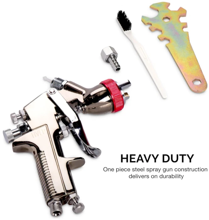 Pistola De Pintura HVLP Professional Automotriz Para Casas Autos 2.0mm,600CC NEW PULVERIZADOR DE PINTURA DE ALTA RESISTENCIA: Cada pistola pulverizadora consta de un cuerpo de acero de una sola pieza, una boquilla de acero inoxidable resistente a la corrosión y una tapa de latón macizo para una mayor durabilidad. ALTO VOLUMEN Y BAJA PRESIÓN HVLP: El diseño de suministro de fluido por gravedad alimenta suavemente la pistola pulverizadora y funciona junto con tres perillas de válvula ajustables para una aplicación precisa de la pintura. BOQUILLA DE 2.0 MM: La boquilla roja de 2.0 mm con código de color es perfecta para aplicar barniz y una variedad de proyectos de pintura automotriz y doméstica. DEPOSITO DE 600 CC: Cada depósito de aluminio de 600 cc (20.3 onzas líquidas) incluye tapa, y cada unidad de pulverización de pintura incluye un manómetro/regulador de aire metálico, un cepillo de limpieza y una llave multiusos para su montaje y desmontaje. ESPECIFICACIONES: La presión de funcionamiento de esta pistola de pintura neumática es de 40 PSI; la presión de trabajo es de 10 PSI; el consumo promedio de aire es de 4.5 CFM. SHIPPING: We offer FREE shipping on all orders! We ship within Three business days of payment, usually sooner. We use a selection of shipping services such as UPS, FedEx, USPS etc. We only ship to the lower 48 states, no APO/FPO addresses or PO Boxes allowed. Local pickups and combined shipping options are not provided at this time. FEEDBACK: Customer satisfaction is very important to us. If you have any problem with your order, please contact us and we will do our best to make you satisfied. Thank you for shopping with us!