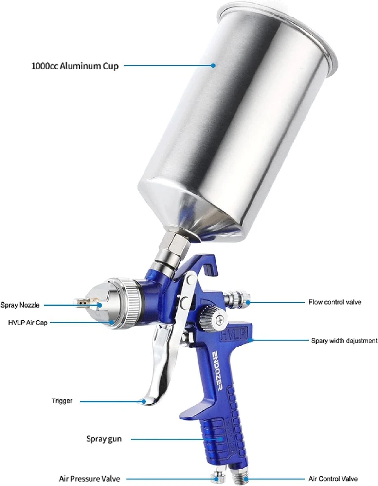 Menu Other Items Feedbacks About Us Contact Us Add To Favorites Professional HVLP Gravity Feed Air Spray Gun Set with 1.4 1.7 2.0Mm Nozzles, Paint Gun with 1000Cc Aluminum Cup for Auto Paint, Wall Painting, Base Coatings This spray gun is supplied with a 1000cc gravity feed cup, with 1.4 1.7 2.0mm real stainless steel nozzle and needle. The hvlp spray gun hood is made of brass, wear-resistant and corrosion-resistant, 15 holes design, uniform atomization, excellent effect. 1/4 "NPT inlet and quick adapter of the same specification. Fluid control adjusts the amount of spray paint, pattern control adjusts the fan pattern size, and the air conditioning valve provides the ability to adjust the air flow rate. It is designed to provide uniform spraying and particle size for all types of surface coatings. In the painting process effective paint filter(product contains) recommended to reduce any small pieces of dried paint or pollutant in the fluids to ensure a perfect finish. In addition, this air spray gun case also includes accessories such as air pressure gauge, quick adapter set, etc., Compatible with various usage scenarios. Endozer spray paint gun can be used for various purposes such as furniture repair, mural painting, car painting, painting, arts and crafts, paint coating of industrial products, spray paint of factories, and model making. HVLP air spray gun that is easy to use even for beginners Product Description Item Specification Item model number H827 - Set Part Number H827-Set Style Handheld Power Source Air Powered Color Blue - 1.4/1.7/2.0 Included Components Paint Filter, Air Pressure Gauge, Quick Adapter Set Material Aluminum Country of Origin China Batteries Required? No Hose Length 1.8 Meters Item Weight 2.81 pounds Batteries Included? No Model Name H827 - Set Recommended Uses For Product Painting Special Features Low Pressure, High Volume, Gravity Feed Product Dimensions 5 x 4 x 5 inches Size 1.4/1.7/2.0 1000cc Dimensions Shipping Returns Additional Info Product Dimensions: 4.0 inches x 5.0 inches x 5.0 inches. Weight: 2.81 lb Fast shipping is very important for us. Our standard shipping service is FREE. Your order will be shipped within 1-3 business days upon full payment received. Most items are delivered within 3-5 business days, however, please allow 3-10 business days. We are shipping only to USA. We only ship to the confirmed Paypal address. We reserve the right to cancel any order for any reason at any time. We are not responsible for undeliverable addresses. We offer a 30 day return policy from checkout winning date. Your satisfaction is guaranteed! If for any reason you are unhappy with your item, just return it within 30 days for a full refund, minus shipping cost. Please contact us prior to initiating a return so that we can issue you a refund authorization. Items defective upon receipt must be packaged in their retail packaging as if new and returned with a detailed description of the problem. Return shipping fees are not refundable. We reserve the right to decline any returns if the above guidelines are not followed. All of our items, unless otherwise stated, will only run on 120 volts. Please check to make sure your country complies with these specifications. If you have a problem or question regarding your transaction please contact us before leaving any type of feedback. We will work with you to resolve any problem you may have.
