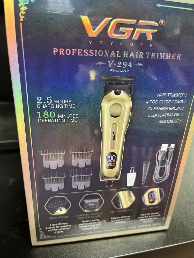 PROFESSIONAL HAIR TRIMMER V-294 2.5 HoURs CHARGING TIME 180 MINUTES OPERATING TIME HAIR TRIMMER / 4 PCS GUIDE COMB / CLEANING BRUSH / LUBRICATING OIL / USB CABLE/