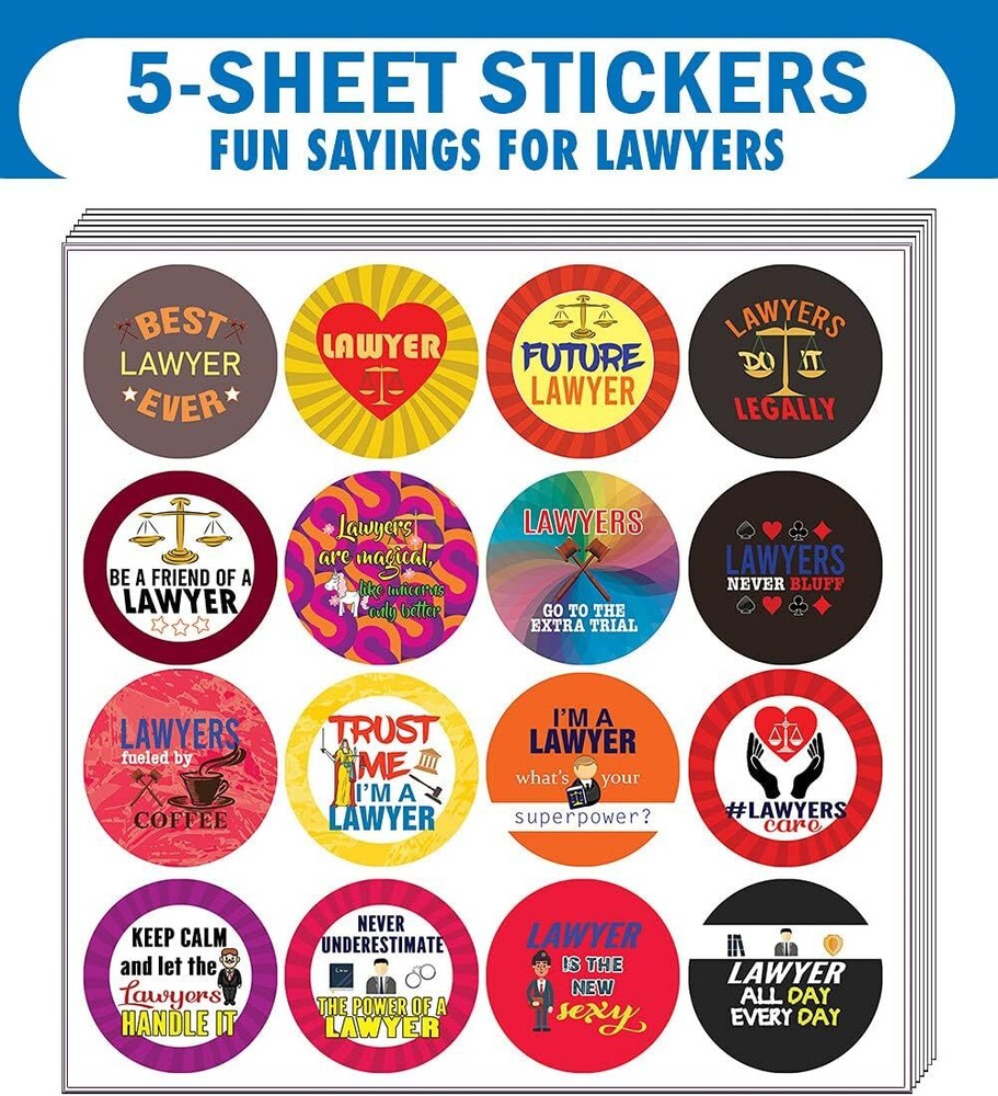 16 UNIQUE DESIGNS INSPIRING STICKERS FOR YOUR DIY PERSONALIZED DECORATIONS - I am a Lawyer Stickers (5-Sheets x 16 Designs). These colorful and uniquely inspiring round shaped stickers are the best tool for DIY decoration and personalization of your belongings. GREAT STOCKING STUFFERS, TEACHING SUPPLEMENTARY MATERIALS, AND GIVEAWAY - Great stocking stuffers gifts for Lawyers, Juris Doctors, Professionals, Men Women. A perfect design to give during guidance sessions, classroom activities, school giveaways, birthdays, anniversaries, family day, and any other special occasions. MADE WITH DURABLE AND WATERPROOF MATERIALS - There is a lamination or coating to make the stickers high water resistant, and WILL NOT fade from the water. The stickers can stick it anywhere you like, and it sticks there and lasts a long time. A COLORFUL AND DECOR STICKER DECAL - Each sheet with 16 individual round stickers. There are 5 Sheets, with a total of 80 pieces of stickers. STICKER SIZE: 1.5 INCHES IN DIAMETER I am a Lawyer Stickers (5-Sets X 16 Designs) COLORFUL AND COLLECTION OF TEXT STICKERS • Well designed. • Very encouraging. • Self-adhesive. I am a Lawyer Stickers (2-Sets X 6 Cards) are super fun to collect; you can't have just one! That's why you will find a selection of stickers right here. Each package comes with different stickers in a variety of designs. Stick them here, stick them there, stick them everywhere! Everyone will love these self-adhesive stickers. These colorful stickers are perfect for any adults and these come with very inspiring messages and bright pictures. A fun, inexpensive way to add a decorative, notes, and stationery. Delight yourself with uplifting messages designs that are very encouraging. I am a Lawyer Stickers (2-Sets X 6 Cards) perfect for giveaways, behavior incentives, prizes! These stickers are acid-free, nontoxic, and safe for use on photos. This product comes with a 60 days money back guarantee. You can return them to us for a full refund.
