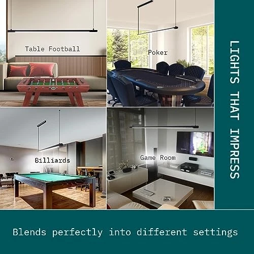 Return Policy Fast Delivery Trusted seller Professional LED Billiard & Pool Table Light, Non-Flickering & Evenly Distributed Light Source & Adjustable Height - Rotaflex, Bright White 3000K (52 inch) Product Description ❰Lights that Help You Clean the Table❱ No corners left in the shade! billiard pool table light is designed to shine a gleaming light on your pool table, while also illuminating the rest of your rec room. LED Pool table light that is just right ❰Designed for a Game Room❱ Looking for a billiard light that will fit right into whatever type of ceiling you have? Adjust the height & light direction with 360-degree rotation–even dim the lights to create a perfect atmosp for winning. ❰Lighting that Works for You❱ Make a rec room that will become your favorite place to hang out, play some pool, and enjoy time with friends. You’ll know your lighting is good when everything is illuminated, yet you forget the lights are even on. ❰Easy Assembly❱ This hanging pool table light is set up in just a few steps: install the mounting bracket, connect strings to it, then seamlessly attach lights to each other. Easy, and simple. ❰Non-flicker lights to last you a 50000 hours❱ Lights flicker, even if you don’t notice it. This may cause eye strain, and that’s the last thing you need while relaxing. We invested in technology to make sure our LED lights don't twitch and will last you for at least 50000 hours. Shipping Returns Payment Shipping Shipping is FREE to all addresses other than APO/PO boxes in the lower 48 states. All our stock ships from US-based warehouses. Shipped via USPS or UPS (depending on location and package weight) Unless stated otherwise, all orders will ship within 24-72 hours of your payment being processed. Check our feedback to see the great reviews of FAST shipping we offer. Returns Seller does not accept returns Payment We currently accept payment via eBay managed payments only. Once payment is cleared, we will dispatch your shipment within 1-3 business days. Please refer to the "Shipping" tab for more information regarding shipping speed to your destination.