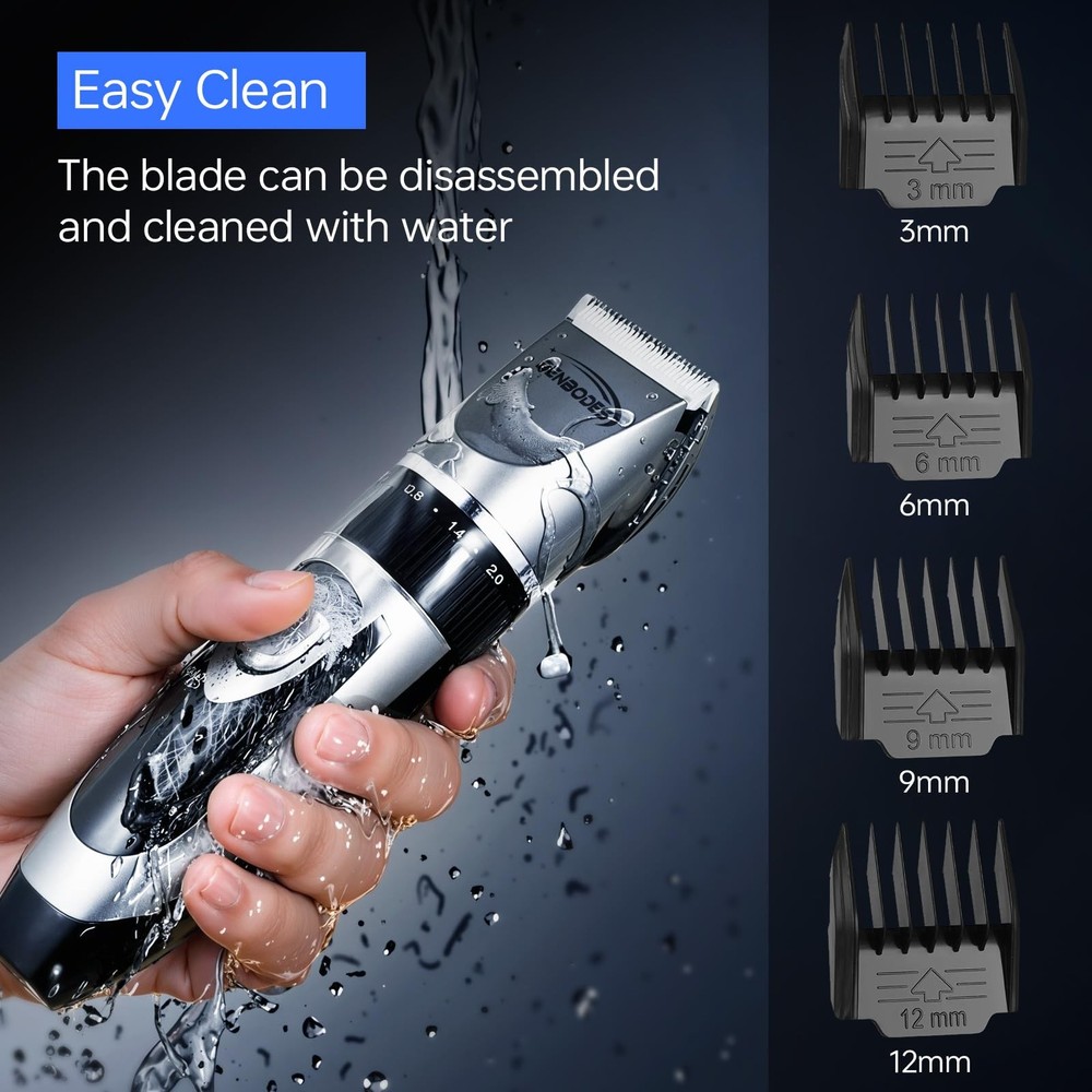 This hair clipper is a game-changer for at-home grooming! The cordless/corded design gives flexibility, and the titanium-ceramic blades deliver smooth, precise cuts every time. The LED display is super handy, and the kit comes with everything you need—multiple combs, scissors, and even trim patterns for styling. Super quiet, easy to clean, and feels professional. Perfect for DIY haircuts or beard touch-ups without the salon price!