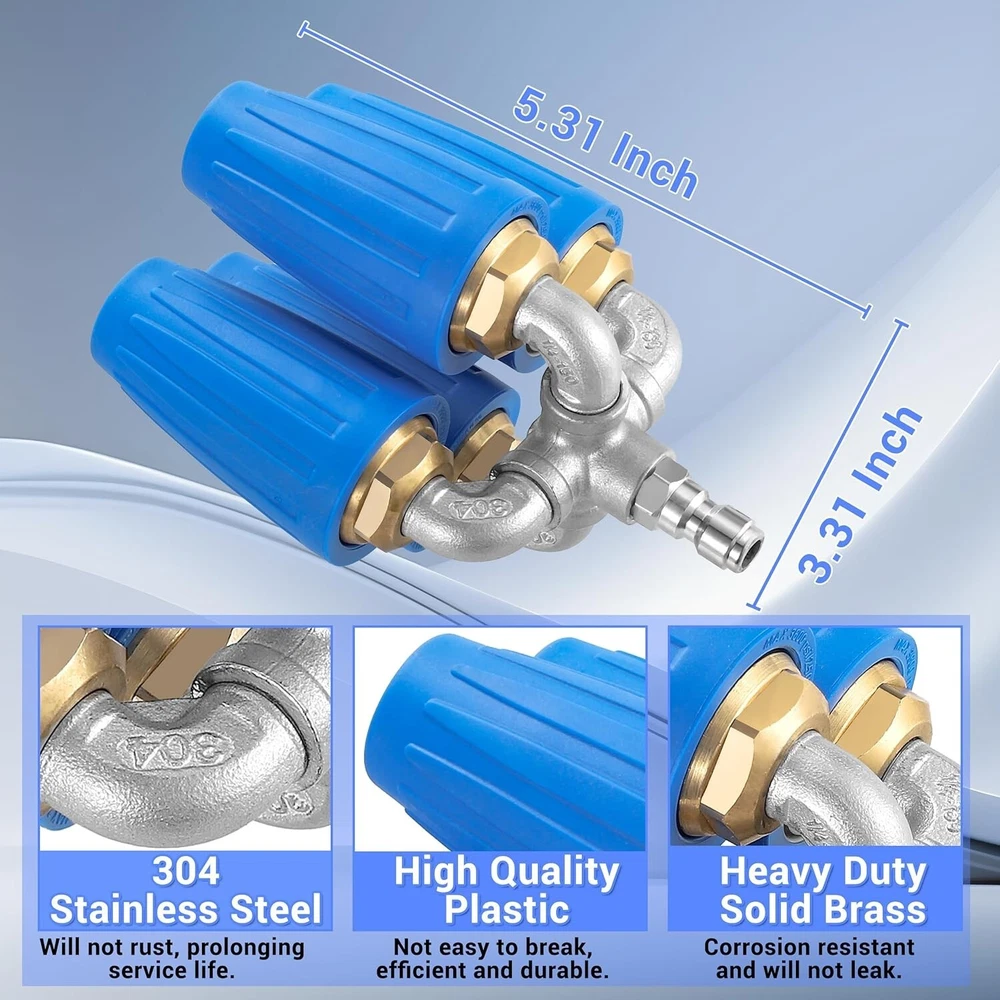 Inlet Connection Type: National Pipe Tapered Material: Stainless Steel, 304 Stainless Steel, Brass, High Quality Plastic Maximum Pressure: 4000 psi Number Of Ports: 1 Outlet Connection Size: 0.25 Inches Brand: Unbranded gtin13: Does not apply UPC: Does not apply Exterior Finish: Stainless Steel, Brass Color: Silver Assembly Required: No Style: Quadruple Nozzle Maximum Operating Pressure: 4000 Pound Per Square Inch Package Dimensions: 5.75 X 3.7 X 3.62 Inches Outlet Connection Type: Npt Inlet Connection Size: 0.25 Inches Items Included: Pressure Washer Turbo Nozzle Valve Type: Ball Valve Type: Pressure Washer Nozzle Item Weight: 1.8 lb Features: Quick Connect, Quadruple Nozzle, Rotating Nozzle, Turbo Nozzle, High Pressure Cleaning, Wide Application