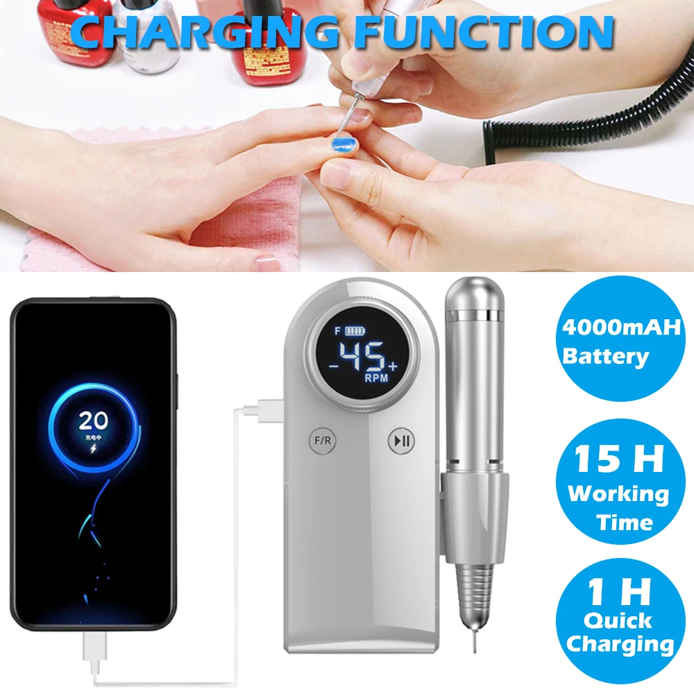 Professional Rechargeable 45000RPM Nail Drill Machine DIY Manicure Nail Files BK