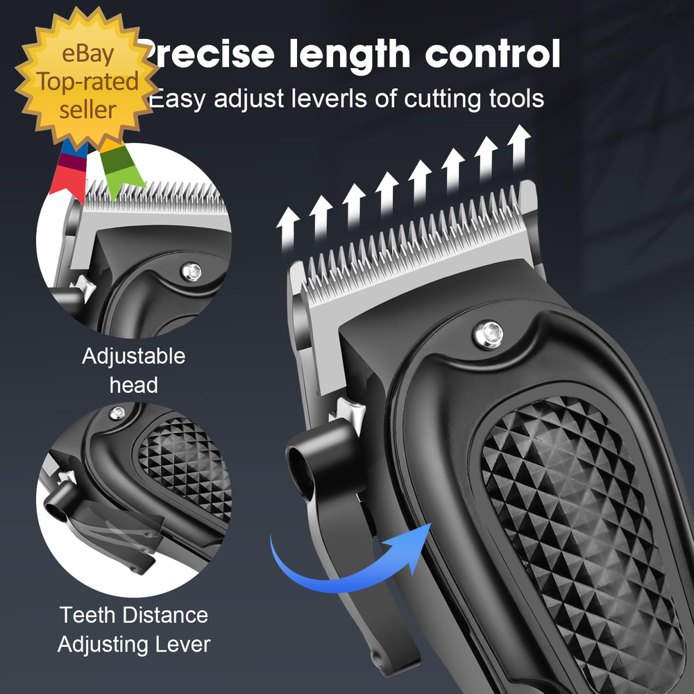 Store New Arrivals Add to Favorite View Feedback Contact fessional Hair Clipper Set & Trimmer Kit for Men, Rechargeable Cordless Barber Description Item model number HYN-212+023 Product Dimensions 6.69 x 1.97 x 1.57 inches; 1.1 Pounds Country of Origin China Batteries 1 Lithium Ion batteries required. (included) Model Name HYN-212+023 Charging Time 4 Hours Battery Description Lithium-Ion Included Components Hair Trimmer, Comb, Cutting Combs, USB Charging Cable, Manual, Hair Clipper, Haircut Cloak, Brush 【Excellent Blade】: The clippers in this HIENA PRO professional hair clipper set are equipped with upgraded stainless steel blades, which are sharp and durable 【Adjustable Blades & Limit Combs】This HIENA PRO hair clipper set is equipped with an adjusting lever, allowing users to easily adjust the blades. Additionally, the main clipper comes with 4 limit combs (1.5mm, 3mm, 4.5mm, 6mm) and the trimmer comes with other 4 combs (1mm, 3mm, 5mm, 7mm), providing more length options than using adjusting lever 【Powerful & Quiet Motor】: Both Clippers are equipped with a powerful and durable motor, which can easily cut off various types of hair. While achieving high speeds, they also maintain relatively low noise levels, avoiding disturbing people around during use 【Large Capacity Battery】The large hair clipper is equipped with durable battery, which can be fully charged in just 90 minutes, with a long running time of up to 300 minutes. What’s more, the battery for trimmer also last for 120 minutes long, suitable for travelling 【Perfect Gift Choice】This hair clipper set combines practicality with style, making it an ideal gift for someone special. Whether for a birthday, anniversary, or just as a thoughtful gesture, it is sure to be appreciated and enjoyed Product Description Best Ever Made! HIENA PRO-A Brand that Focusing on Producing Great Products. The video showcases the product in use. The video guides you through product setup. The video compares multiple products. The video shows the product being unpacked. 5 Features Meet All Your Demands! Be Your Own Barber!!! 1 High Quality Blade 2 Adjustable Peddle 3 Strong Quiet Motor 4 Large LED Display 5 USB Charginge Black Set Comparison of Clipper Set Black Color Pure Black #7 (1-7mm) Attachment #7 (1-6mm) Sharp Blade Adjustable Peddle Quiet Powerful Motor Smart LED Display Black Color 5 STAR #7 (1-7mm) Attachment #7 (1-6mm) Sharp Blade Adjustable Peddle Quiet Powerful Motor Smart LED Display Black Color Gold Black #7 (1-7mm) Attachment #8 (1-12mm) Sharp Blade Adjustable Peddle Quiet Powerful Motor Smart LED Display Black Color Pure Black #7 (1-7mm) Attachment #3 (1-3mm) Sharp Blade Adjustable Peddle Quiet Powerful Motor Smart LED Display Pure Black Kit 5 Star Kit Gold Circle Kit LED Trimmer Can I use the clipper and trimmer when it is plugged in or charging? Yes, definitely. These professional hair clippers could be either cordless or corded., which allows you to use the hair-cutting machine by battery or when they are charging. How often should I apply blade lubricate oil? Based on our experience, It is recommended to apply 2 to 3 drops of blade oil before and after cleansing, which could effectively minimize friction, reduce heat, prevent rust & prolong blade life. We hope you enjoy the product! Best Gift Choice Ever Giving out gifts is one of the most beautiful things in the world, gifts make people feel happy, and allow people to feel loved and cared for by someone. We hope everyone is loved and has someone to love. Purchase our great product today and send it to those you love, you will never regret it!!! ABOUT US We offer the best prices around on high quality products. Our E-store includes media such as books, movies, music and games while offering electronics, toys, sporting apparel, clothing, tools, general home, garden items and more. SHIPPING We are always working hard to ensure your package arrives as soon as possible. Please understand that some factors like weather, high postal traffic, and the performance of shipping companies are outside of our control. We offer free shipping to the lower 48 states and ship within 2 business days of payment, usually sooner. We do not accept P.O. Boxes. Please provide a physical address. For shipping outside of the continental USA, we only use eBay's Global Shipping Program. The item is shipped to IL and then sent to the rest of the world. International customers are responsible for all duties and taxes. Continue to 'check out' to calculate costs for shipping the item to your country. Messages regarding eBay's Global Shipping Program MUST be directed at eBay EXCLUSIVELY. RETURNS We do not accept returns under normal circumstances. However, we will gladly consider a return if the item is received broken or if the wrong size is sent to you. In all other cases, returns will not be accepted. CUSTOMER SATISFACTION We try our very best to make sure every customer is completely satisfied. If there's a problem, message us! We're happy to help.