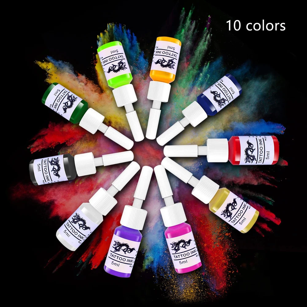 Tattoo Machine, Rotary Tattoo Pen Kit with Power Supply, Foot Pedal & Pigment, 20pcs Cartridge Needles Semi Makeup Practice Kit for Makeup Artists (Red) 【PROFESSIONAL TATTOO KIT】 All supplies have been tested. The needle cartridges are Ethylene oxide (EO) gas sterilized and individually packaged, the rotary pen with the RCA interface runs smoothly and is almost silent. 【ATOMIC FISSION MOTOR】The tattoo supplies kit uses an advanced atomic fission motor, with strong power and low noise, quite easy to handle. The length of the stroke: 0-4mm. We suggest using 6-8V to run the machine which will be more efficient. 【HIGH QUALITY POWER】The power adapts new technology and design, more and safe. With the automatic protection function, when the voltage is too high or abnormal, the power will be automatically cut off and protecting the tool. 【PACKAGE INCLUDE】The tattoo supplies kit contains: 1* tattoo machine, 1*power supply, 1*RCA cord, power cord*1, 1*foot pedal, 10*needle cartridge, 2*transfer paper, 1*rubber gloves, 1*practice skin, 1* grip cover, 10*inks, and 40*ink cups, fulfilling the needs of beginners and masters. 【COLORFUL PIGMENTE】Equipped with 10 bottles of different color pigments to meet all your color needs. Please email us if you have any problems during to use.