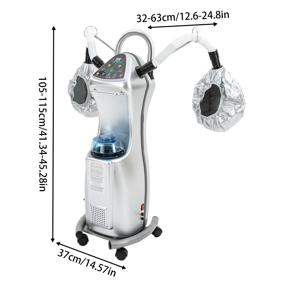 Professional Standing Hair Steamer Multifunctional Hair Treatment Machine 110V Description 1. The product needs to be operated strictly according to the product manual. 2. The temperature setting needs to be within the normal range; Avoid staying in a certain area for too long; Avoid direct contact between the nursing device and the scalp or skin; Use high-quality insulation materials and scalp protection products. This standing hair steamer is made of premium materials and has a solid and sturdy structure that ensures long-lasting use. You can adjust the time and temperature as needed to facilitate different treatments for your hair. In addition, the height of this product is also adjustable, so you can choose the appropriate height according to the height of different people. Our product is sure to be your ideal choice! Key Features Sturdy and Durable: The product is made of high-quality aluminum alloy, ABS and stainless steel, which is hard, abrasion-resistant, corrosion-resistant, rust-resistant , and has a long service life. Ozone Function: The machine with ozone function removes harmful substances, it not only beautifies the hair but also makes the hair clean and shiny, relaxes the head and improves blood circulation. Stylish Appearance: The classic silver appearance, simple structure, and smooth lines make the product highly fashionable, which can be well integrated into various kinds of hairdressing places and make your work look more professional. Good Helper: With a large power of 650W, it can quickly convert water into steam and evenly heat your hair, making it bouncy and shiny. The two steam caps are well sealed to avoid water mist leakage, which can nourish your hair well. Easy to Operate: This product is designed with an intelligent control panel, which is simple and intuitive, and you can realize the corresponding functions by pressing the button. You can choose the suitable time, amount of steam, function, etc. to meet the needs of different hair quality, effectively locking in moisture and nutrients. Thoughtful Design: The trapezoidal base and anti-tangle hair universal wheels ensure that the product is stable and safe as well as easy to move. In addition, the high-quality alloy drain port makes it easy to drain the wastewater. Safe and Reliable: The start switch is safe to prevent leakage, and the fuse for power failure protection enhances the safety of use. Meet Your Needs: Its hose can be adjusted in length(12.6-24.8 in) by telescoping, and can also be bent at any angle to give you more flexibility in use. In addition, its height (41.34-45.28 inches) can also be adjusted to meet the comfort of different customers while improving your work efficiency. Effortless Cleaning: Thanks to the smooth surface, simple structure, and removable design, you can easily wipe off the dirt on it with a soft cloth. Protective Packaging: The air column bag can better protect your product during transportation and make it delivered to you completely to the greatest extent. Details Heat Dissipation Holes: They can ensure timely and rapid heat dissipation to avoid overheating and burning the machine. Practical Handles: Two ergonomic handles provide a comfortable grip and make it easy to push the product. External Water Bottle: It is easy to disassemble and clean, and the semi-clear body also makes it easy for you to observe the water level at any time. Smooth Edge: The rounded and smooth edges not only add to the aesthetics of the product but also improve the safety of use. Application This product can be used in beauty salons, hair salons, homes, and other places for hair coloring, hair care, perm, ozone , cold fog, styling, and so on. Specification Color: Silver Style: Modern Material: Aluminum Alloy, ABS, Stainless Steel Assembly Required: Yes Mounting Type: Freestanding Power Source: Corded Electric Plug Type: US Standard Voltage: 110V Frequency: 50Hz Power: 650W Timing Range: 0-30min Temperature: About 65℃/ 149℉ Power Cord Length: 1.8m/ 5.91ft Panel Size: 24-30cm/ 9.45-11.81in Base Width: 37cm/ 14.57in Product Height: 105-115cm/ 41.34-45.28 in Each Retractable Tube Length: 32-63cm/ 12.6-24.8 in Gross Weight: 12kg/ 26.46 lbs Net Weight: 10kg/ 22.05 lbs Package Size: 104*40*39 cm/ 40.94*15.75*15.35in Package Included 1* Standing Hair Steamer All Accessories for Installation Notes Please read the label on the machine completely before use. Please note that the remaining water should be drained and replaced with fresh water for each use. Before use, please fill the instrument container with water (when the water quality is not good, use the drain valve to pour out the water and add some clean water, preferably pure water.) Please do not energize the container without water in it. Before use, please check whether the power supply voltage is consistent with the power supply voltage required by the instrument. After using the machine, in order to protect the instrument, if it is to be used for a long time, it is recommended to remove the water from the container. Please unplug the power plug after use. The instrument must be operated carefully to prevent collisions. Please allow the slight color difference caused by the shooting light and the 1-3 cm error due to manual measurement, and make sure you do not mind before ordering. Payment Delivery details Terms of sales About us Contact us Payment We accept ebay payment 。 Fees such as import duties, taxes are not included in the item price or shipping costs. These charges are the buyer's responsibility. Delivery details Shipping: 2-9 working days to: USA Terms of sales We maintain high standards of excellence and strive for hundred percent customer satisfaction. Feedback is very important to us. We hope that you contact us immediately before you give neutral or negative feedback, so that we can address your concerns. It is impossible to address issues if we do not know about them! About us Your satis faction is our ultimate goal. We work h