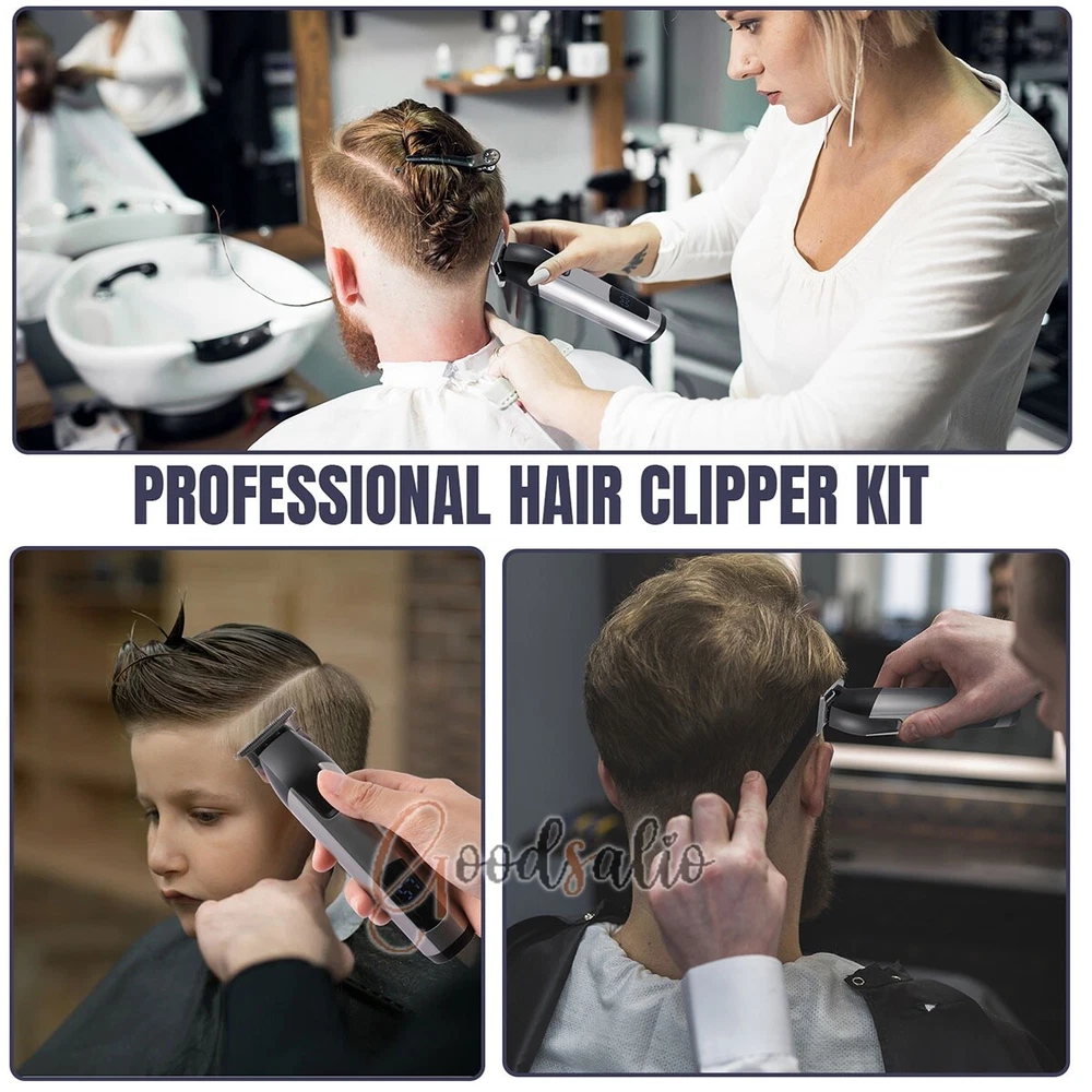 Professional Trimmer Kit Hair Clippers Cordless Barber Shaving Machine Barber US ★SPECIAL TIPS: √ Ship within 24 hours Via USPS from NJ ,USA √ 100% New & Excellent Quality √ Professional Customer Service √ Strictly QC, Each set was fully tested before shipping √ Offer delivery with Tracking Number Product Feature 1.T-Blade: Haircutting Kits with T-shaped cutter head that can adapt to a wide range of hairstyle needs, whether it's trimming bangs, sideburns or dealing with short hair at the back of the head. 2.Powerful Copper Core Motor: The Professional Hair Clippers is equipped with a high speed copper core motor with super power, suitable for all kinds of coarse and hard hair, fast and clean hair cutting. 3.0.1mm Ultra-Short Pitch: The Trimmer Kit has a 0.1mm ultra-short pitch, which enables you to reach the desired length more quickly when trimming your hair and improves the trimming efficiency. 4.Slim Body: The ergonomically designed body of the Men Cutting Machine fits your hand tightly and reduces hand fatigue when you hold it. 5.High-Capacity Lithium Battery: The battery capacity of the Hair Clippers for Men is 1200mah, which has a long battery life of 150 minutes, and you can also use it while charging, so say goodbye to power anxiety. Product Parameters Battery Capacity: 1200mah Use Time: 150min Power: 5W Voltage: 5V Charging Time: 2h Material: ABS + Stainless Steel Color: Silver Size: 151x31mmm/5.94x1.22in Products Include 1x Haircutting 1x Charging Cable 1x Brush 1x Oil 4x Limit Combs