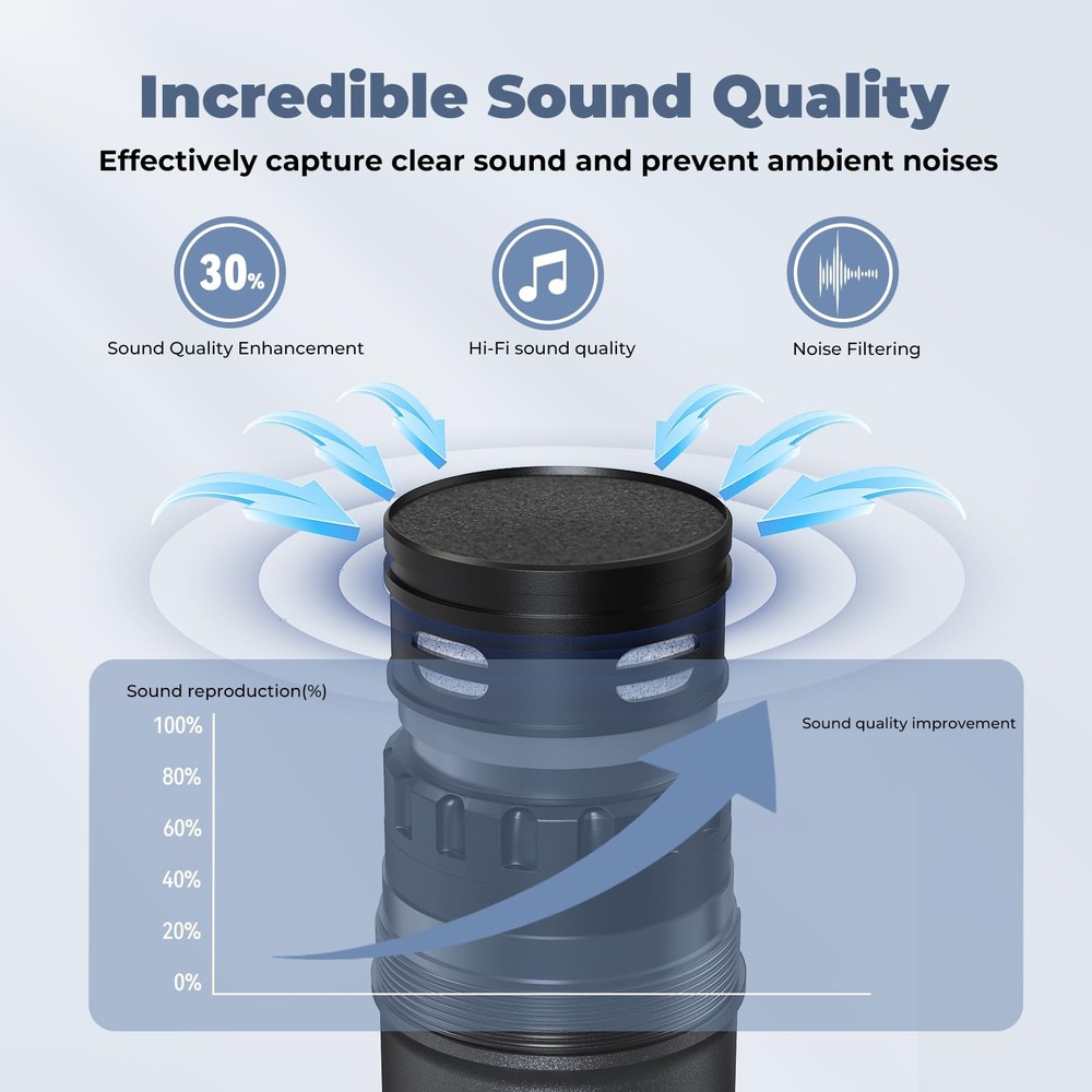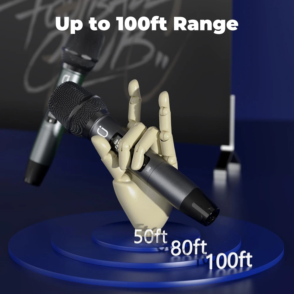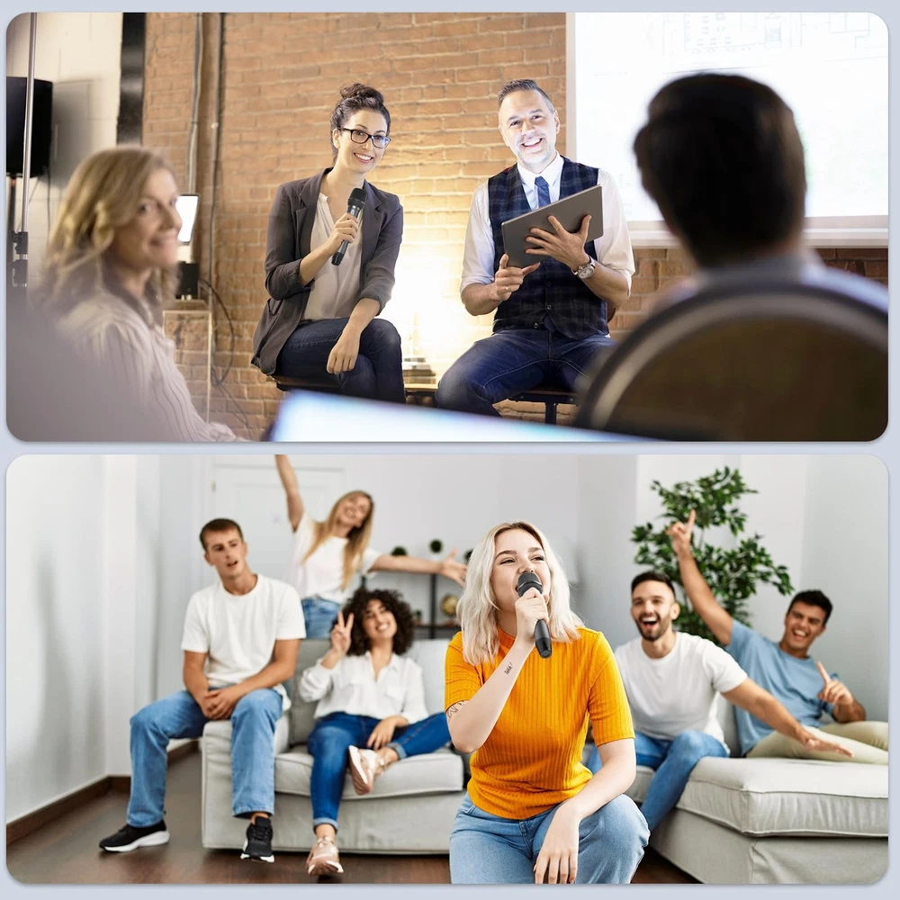 KARAOKE 【Seamless Duets from Any Distance with 50M Range】Say goodbye to the constraints of cords! Our wireless karaoke microphones offer an impressive 50-meter transmission range, ensuring a smooth and heartfelt duet or solo performance, no matter how far you roam on stage or around the room. 【No More Howling with Our Crystal-Clear Wireless Mics】Enjoy pristine sound without the pesky feedback. Our wireless microphones are engineered to prevent howling and maintain the true sound of your voice. Sing your heart out or speak confidently, knowing that what your audience hears is exactly what you intended. 【High-Density Sponge in a Metal Mic Head】Quality sound starts at the source. Our mics are equipped with a high-density sponge inside a durable metal head, balancing clarity with longevity. Whether it's for a passionate karaoke night or a professional presentation, these mics are built to deliver. 【Go Longer with 12 Hours of Battery Life】Our microphones aren't just about sound quality; they're also about endurance. With up to 12 hours of battery life, these mics will keep up with your longest events or late-night jam sessions without missing a beat. 【Plug, Play, and Speak Away】Getting started is as simple as it gets. Just plug in, and you're ready to go—no complicated setup required. Whether you're a tech whiz or a first-timer, these mics are designed for ease of use, allowing you to focus on what truly matters: your voice. 【Perfect for Any Occasion】From teaching a class to live streaming, leading worship in church, energizing a wedding, guiding a meeting, or lighting up the stage, our wireless microphones are versatile performers. They're the ideal choice for any event where you need to be heard clearly and effortlessly.