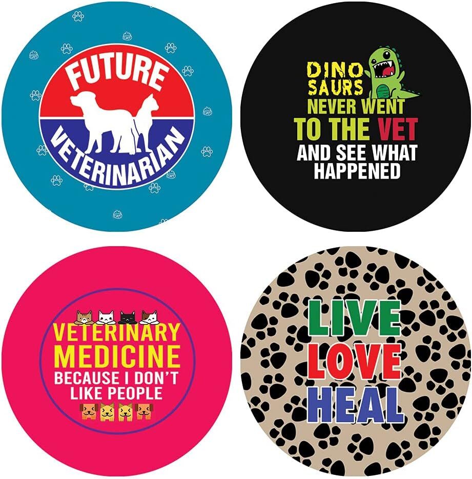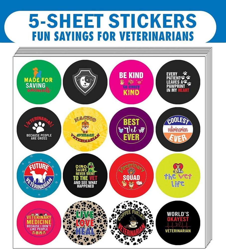 16 UNIQUE DESIGNS INSPIRING STICKERS FOR YOUR DIY PERSONALIZED DECORATIONS - I am a Veterinarian Stickers (5-Sheets x 16 Designs). These colorful and uniquely inspiring round shaped stickers are the best tool for DIY decoration and personalization of your belongings. GREAT STOCKING STUFFERS, TEACHING SUPPLEMENTARY MATERIALS, AND GIVEAWAY - Great stocking stuffers gifts for Vets, Dog Doctors, Professionals Men & Women. A perfect design to give during guidance sessions, classroom activities, school giveaways, birthdays, anniversaries, family day, and any other special occasions. MADE WITH DURABLE AND WATERPROOF MATERIALS - There is a lamination or coating to make the stickers high water resistant, and WILL NOT fade from the water. The stickers can stick it anywhere you like, and it sticks there and lasts a long time. A COLORFUL AND DECOR STICKER DECAL - Each sheet with 16 individual round stickers. There are 5 Sheets, with a total of 80 pieces of stickers. STICKER SIZE: 1.5 INCHES IN DIAMETER I am a Veterinarian Stickers (5 Sets X 16 Designs) COLORFUL AND COLLECTION OF TEXT STICKERS • Well designed. • Very encouraging. • Self-adhesive. I am a Veterinarian Stickers (5 Sets X 16 Designs) are super fun to collect; you can't have just one! That's why you will find a selection of stickers right here. Each package comes with different stickers in a variety of designs. Stick them here, stick them there, stick them everywhere! Everyone will love these self-adhesive stickers. These colorful stickers are perfect for any adults and these come with very inspiring messages and bright pictures. A fun, inexpensive way to add a decorative, notes, and stationery. Delight yourself with uplifting messages designs that are very encouraging. I am a Veterinarian Stickers (5 Sets X 16 Designs) perfect for giveaways, behavior incentives, prizes! These stickers are acid-free, nontoxic, and safe for use on photos. This product comes with a 60 days money back guarantee. You can return them to us for a full refund.