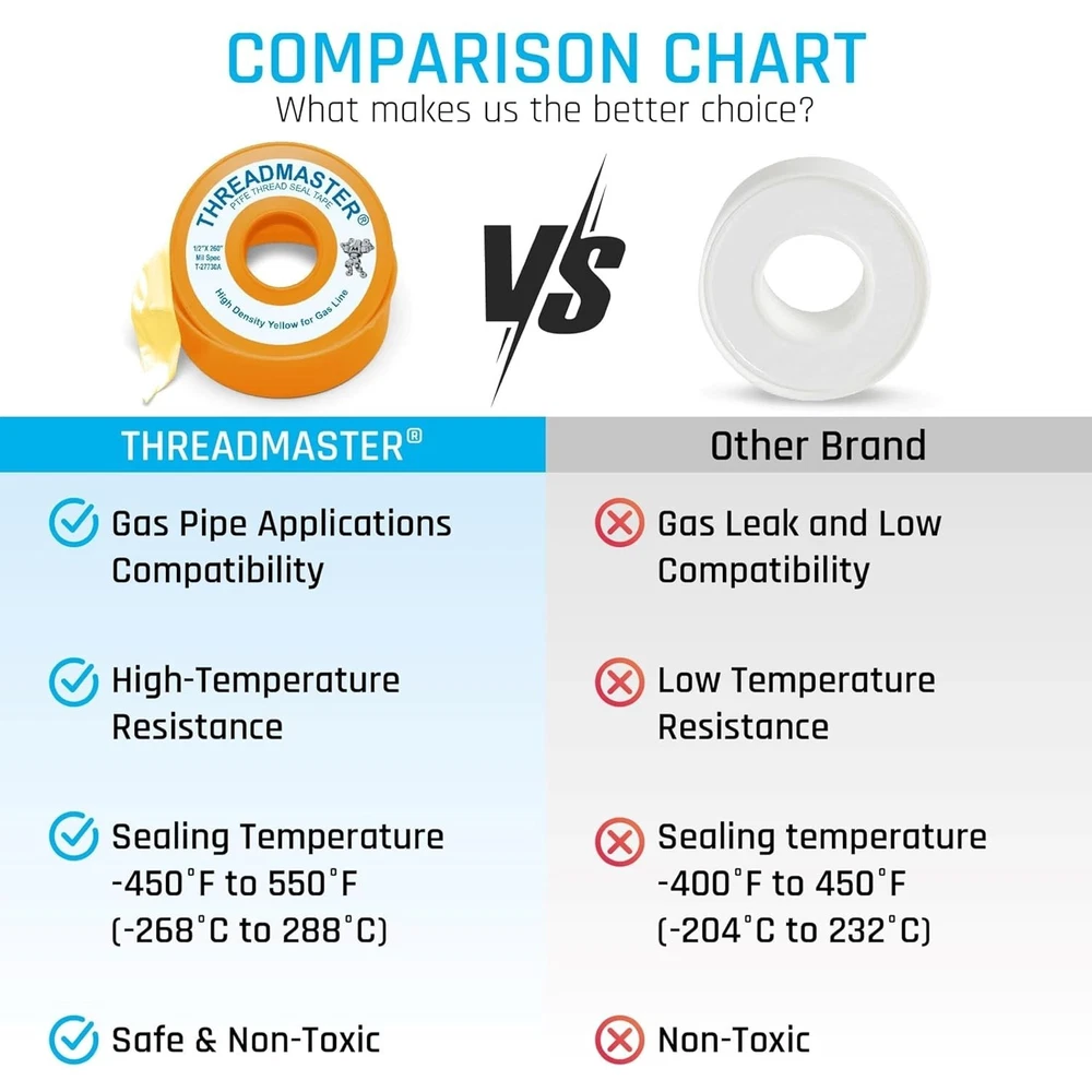 Professional-Grade Plumbers Tape for Gas Pipes - Pack of 10