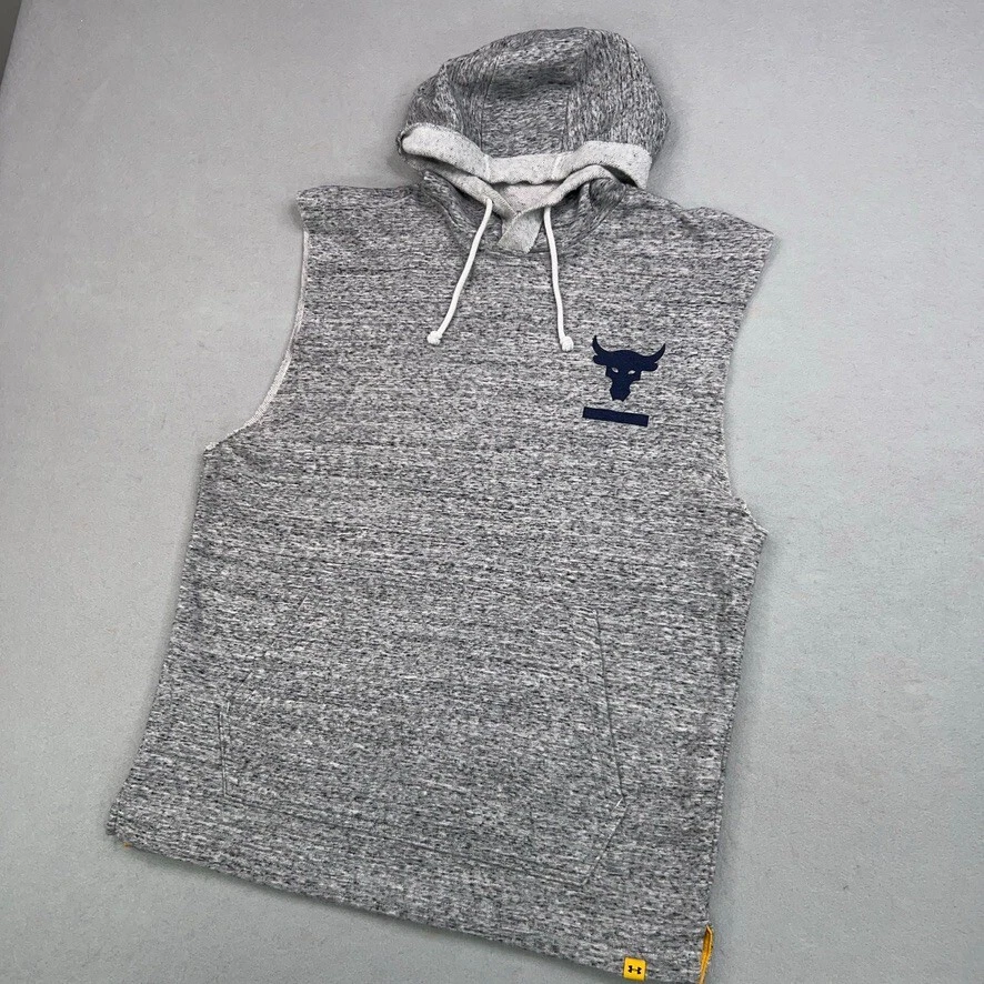 Project Rock Hoodie Mens Medium Gray Sleeveless Under Armour Muscle Performance Condition: - Overall in good used condition. - No rips, tears, or stains. - Under Armour UA x Project Rock Terry Sleeveless Hoodie . Size: - Mens medium. Measurements: - Previous washings may change the sizing written on the tag. - Please refer to the photos above for all measurements. - Please compare our measurements to that of one of your favorite garments. - Please note, item measurements are approximate . All items are bagged and sealed after being photographed, then stored in a smoke free environment to ensure the item is exactly the same as when photographed. I carefully package and ship daily. Feel free to contact me with any questions. All items have been washed per eBay standards & policies.